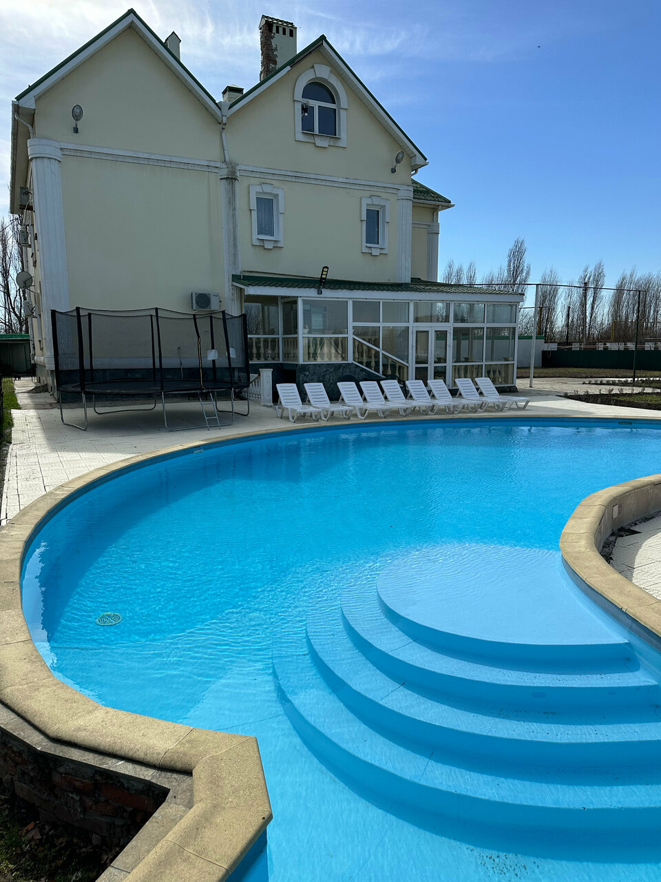 - Горячий бассейн (в холодную погоду).; Возможность размещения большой компании (до 20 человек).; Детский мини-бассейн.; Большая территория с выходом к реке.; Наличие теннисного корта.