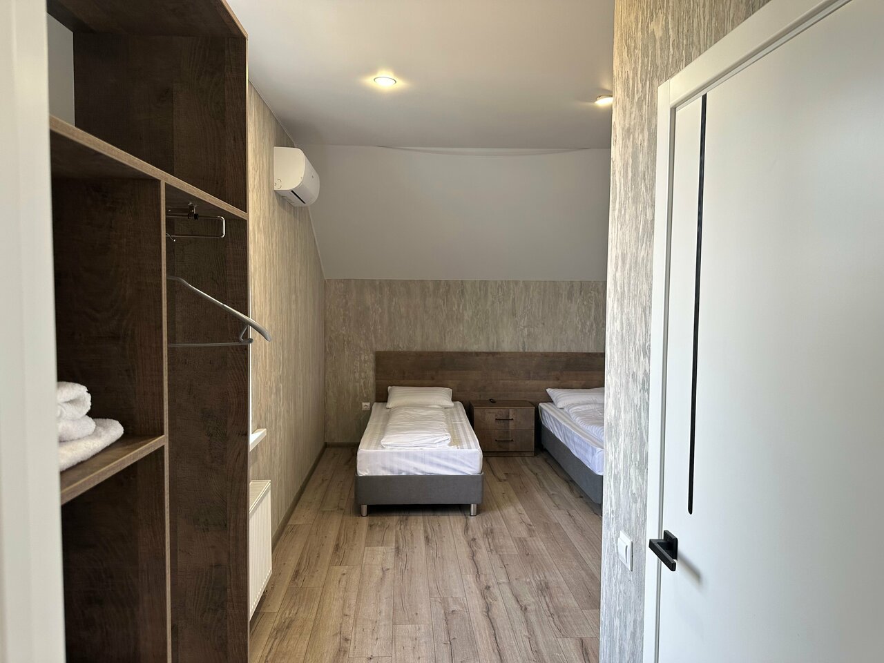 Уютные апартаменты площадью 20м2Мах вместимость - 3 человека 1 двух спальная кровать + 1 односпальное местоПолностью оборудованная кухня, гардероб, телевизор, Wi-Fi, ванная комната, фен, кондиционер, стиральная машина