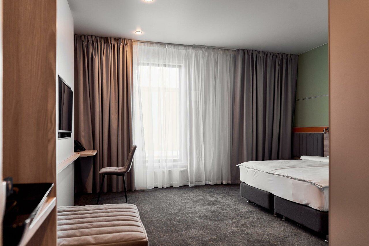 Прекрасный современный отель, тихо, чисто, в номере все необходимое, белье чистое, полотенца белые, удобные матрасы, шампунь, гель для душа, мыло, фен. Кондиционер и бризер. Очень тепло в номере и без посторонних запахов. Вода по бутылке на человека. Парковка бесплатно. Завтрак отдельно 650р/чел. Очень понравилось, будем тут останавливаться