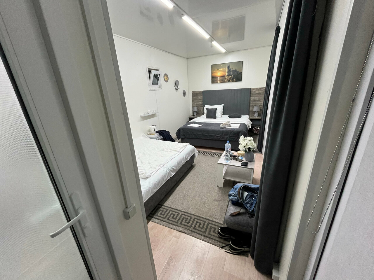 Отличное место для отдыха! Разместили в 5 минут, чистые и опрятные номера, в душе полный набор, чай и кофе на столе, закрытый чистый и уютный двор, на первом этаже круглосуточный магазин со всеми необходимыми товарами и приемлемыми ценами. Однозначно рекомендую!!!