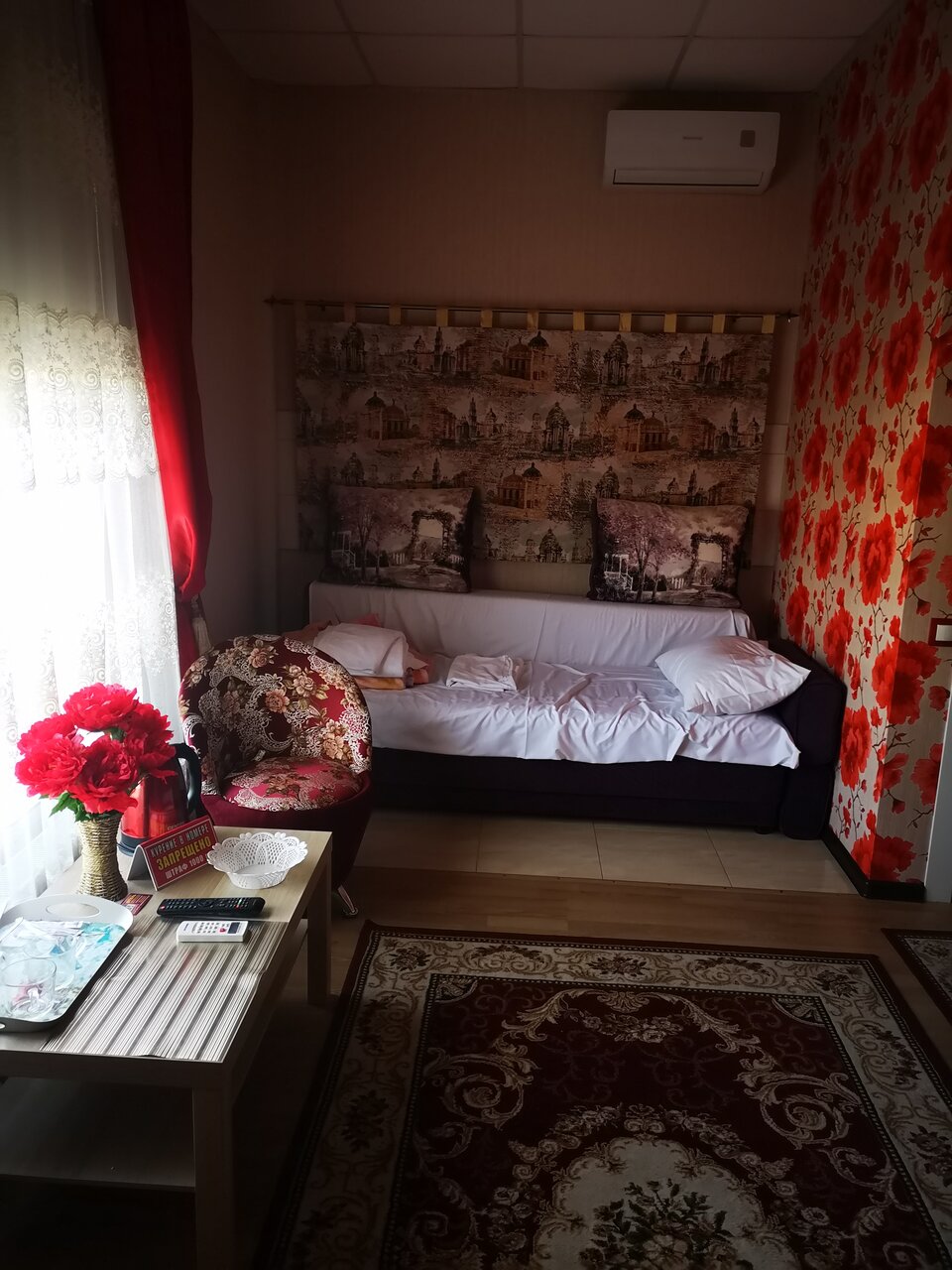 Отличное место. Позвонили за полтора часа, забронировали номер. На 4-х взрослых и двух детей 2 и 5 лет одной комнаты вполне хватило. Отдали 2500. Невероятно чисто, хозяйка сразу нас встретила, все показала, есть своя парковка. Внизу магазин, где есть практически все. Рядом кафе. Порадовало наличие полотенец на каждого, одноразовые шампуни, гель для душа, зубная щетка, чай зелёный и чёрный, кофе, даже конфетки положили))) В номере туалет и душ. Спали тоже хорошо, кондиционер имеется, шум от дороги совершенно не слышно. Очень жаль что на обратном пути не сможем к вам попасть, все было замечательно!!! И ещё раз отмечу что очень очень чисто)