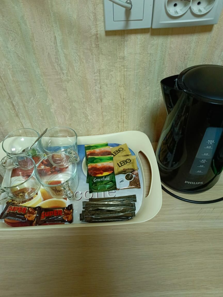 Вс просто замечательно. Номера уютные, телевизор, чай, кофе, сахар, конфетки.