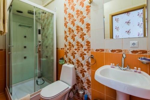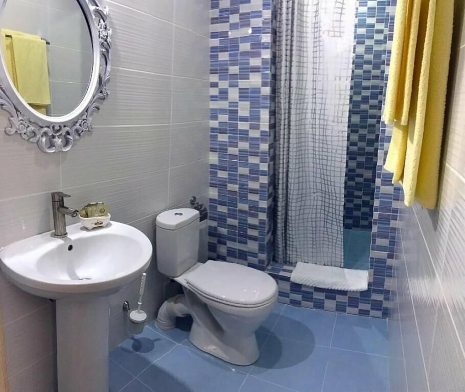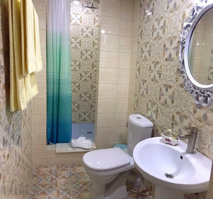 Четырехместный номер с большой кроватью и диваномДуш и туалет в номере