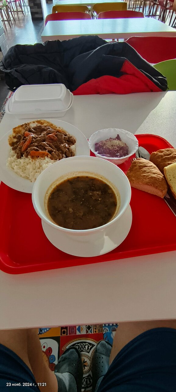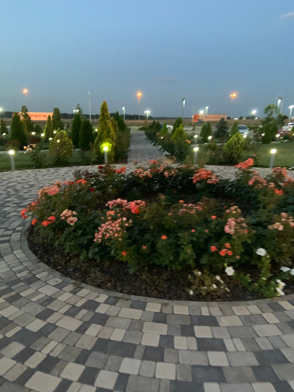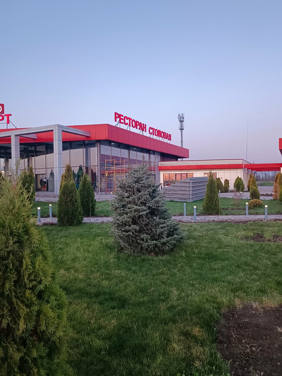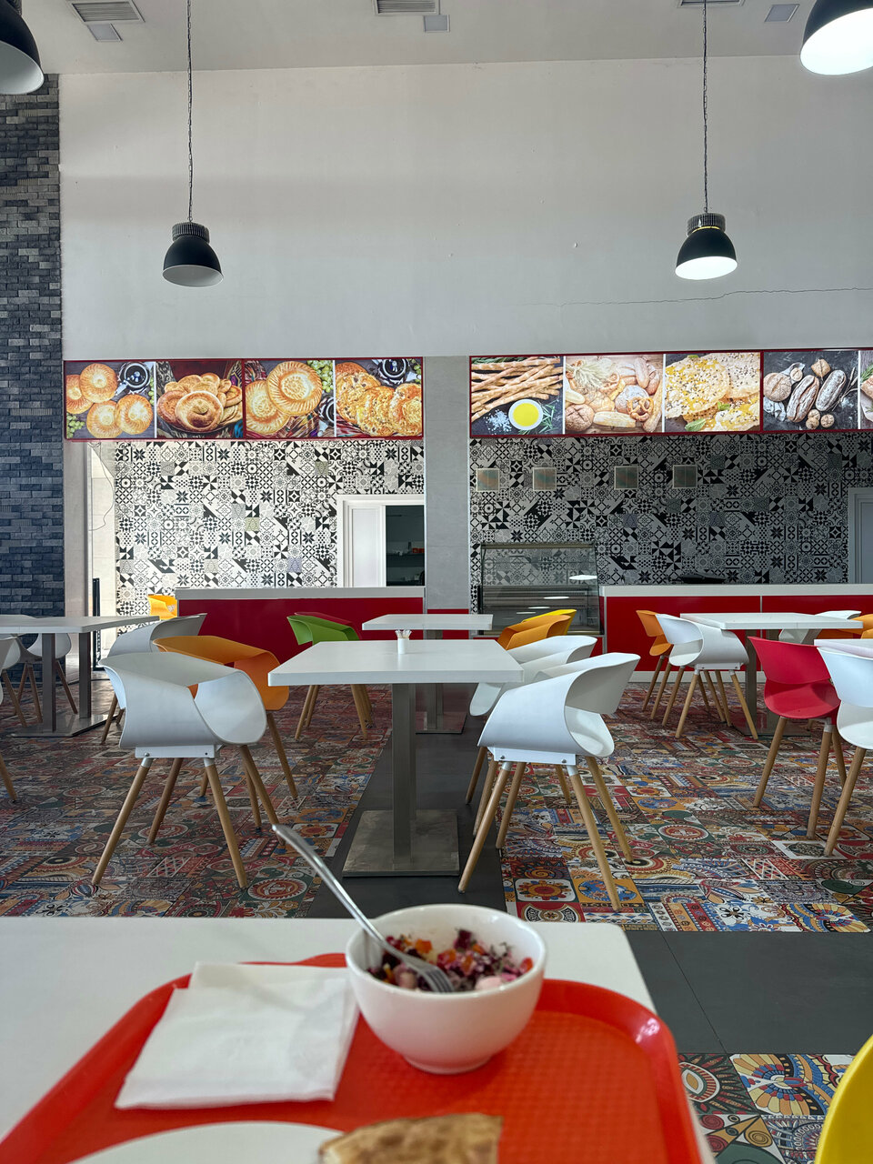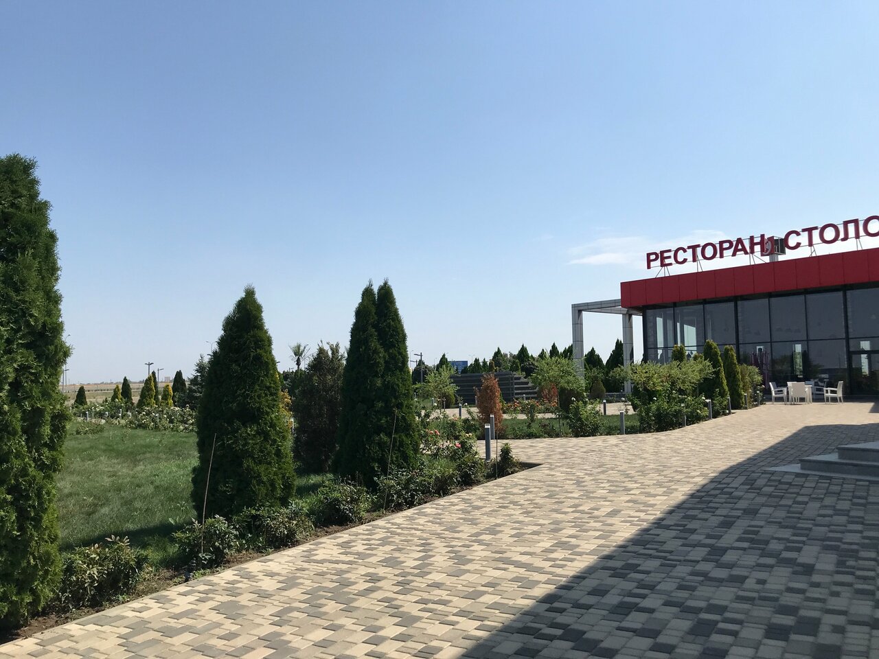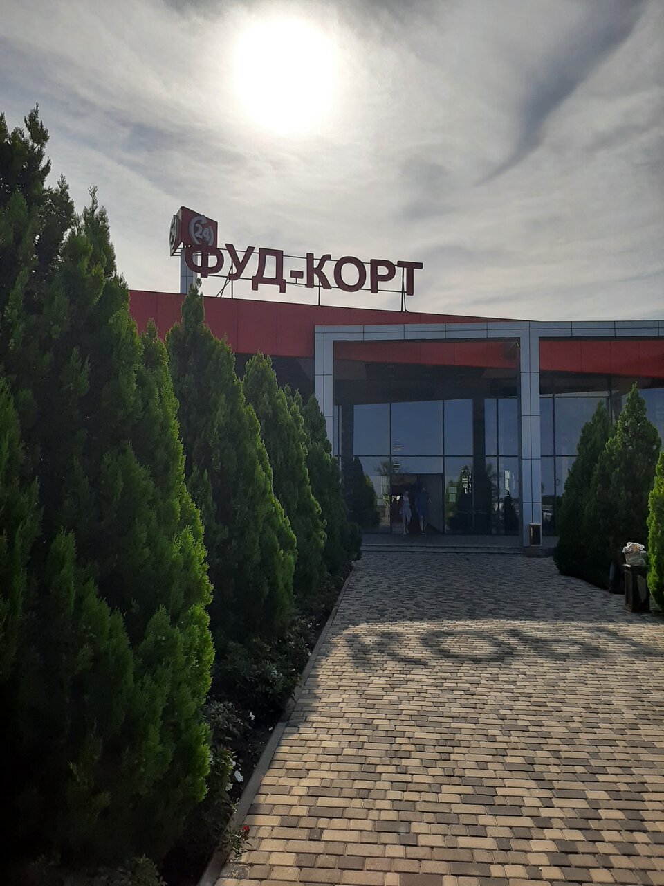 В гостинице не начевал на стоянке стоял.фут корт. Разнообразее блюд и закусок, ценник норм. Все съедобно. Перитория огромная что в нутри что с наружи. Отдохнуть и покушать по дороге к морю самое то.