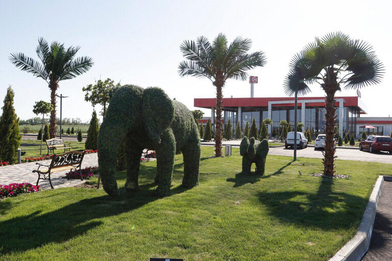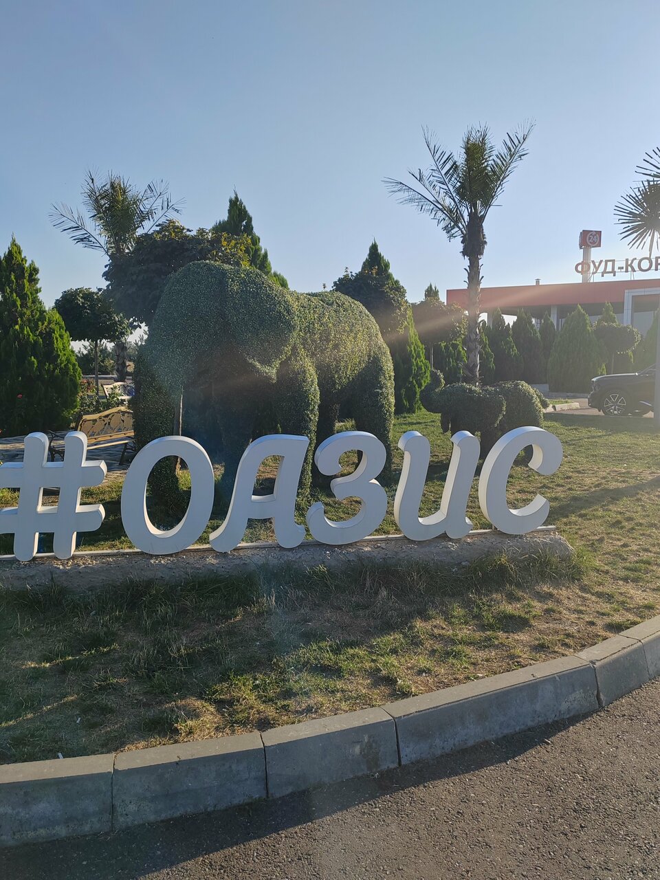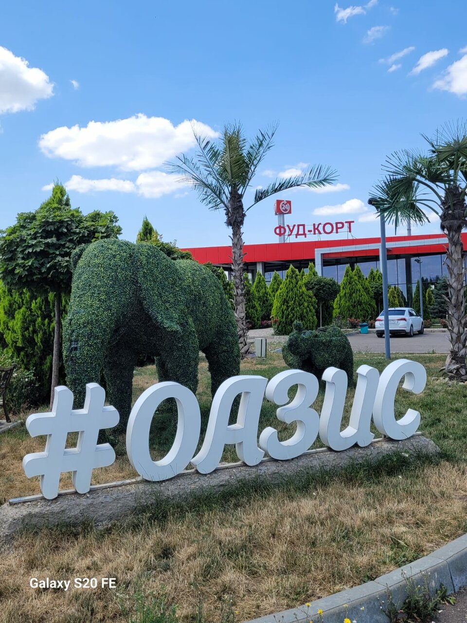 Очень приятная придорожная столовая. Снаружи действительно оазис, очень ухоженные растения, внутри просторный зал, на каждом столе стоят живые цветы. Еда вкусная. Заказывала кебаб и овощи гриль, все очень понравилось.
