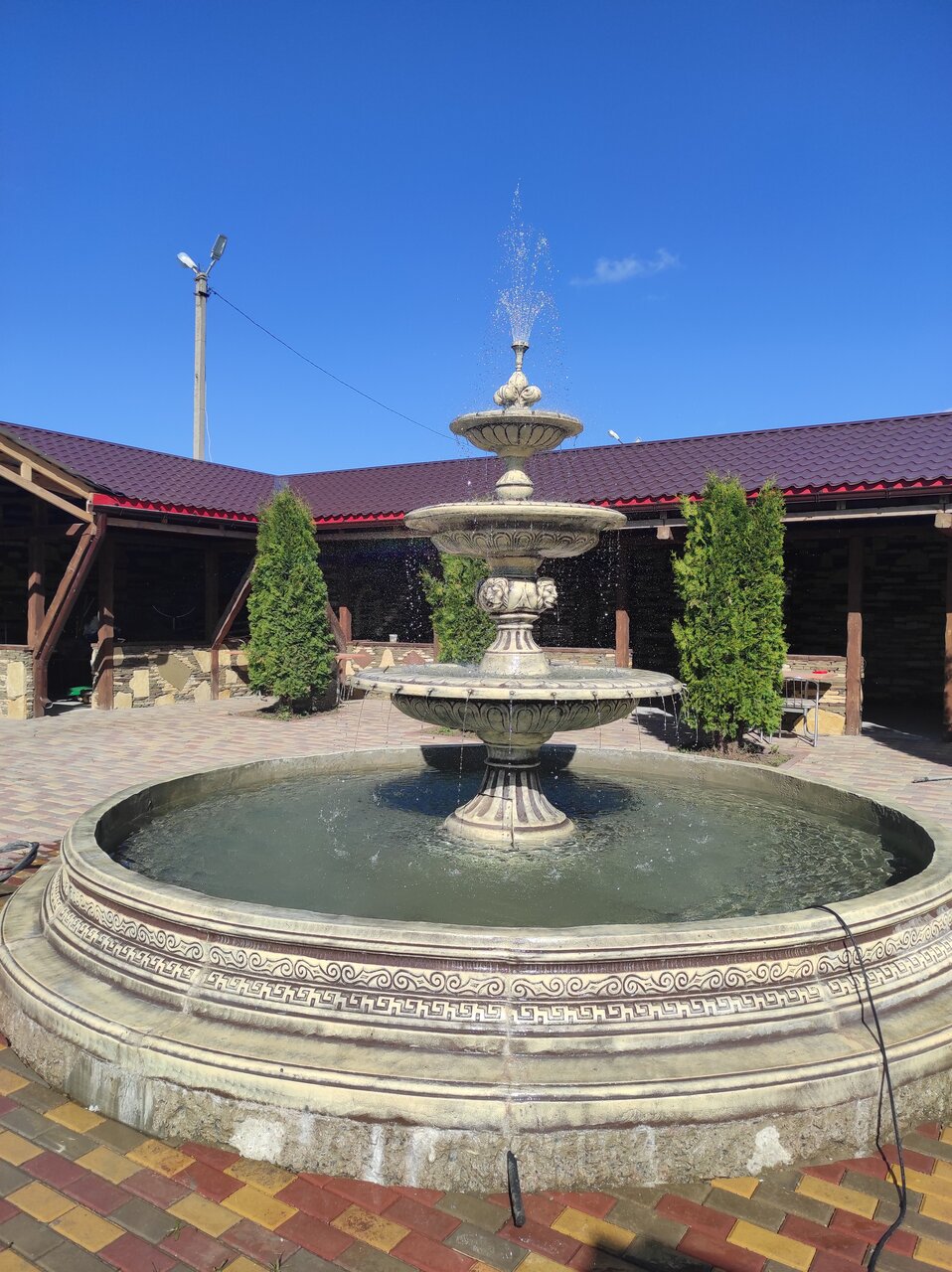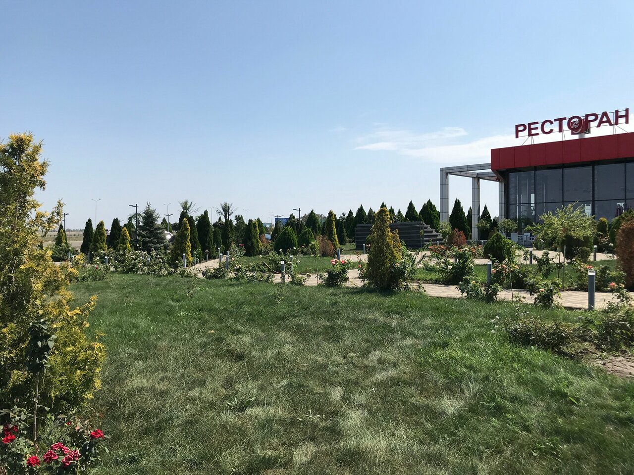 Очень понравилось это местечко, шикарный парк с розами рядом, внутри очень красивый интерьер, полы выложены очень необычной плиткой! Поели вкусно, народу никого..,