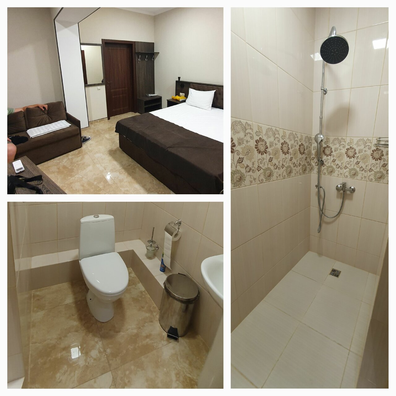 Кроме красиво оформленной территории ничего хорошего там нет. Нам достался номер с торца здания, вход с улицы с заднего двора, как в подсобку. В номере грязно, мебель старая, кран в ржавчине, на кафеле плесень. В душевой кабинке нет даже шторки, как ни старалась я аккуратно мыться, все равно вода на пол льется. Нет ни чайника, ни кружек, ни фена, на человека по 1 маленькому полотенцу. Нет холодильника (меня об этом сразу предупредили),но за 4000 за номер считаю что мог бы и быть. Персонал нормальный. Вообщем если есть возможность, то лучше выбрать другой отель. Я лично сюда больше не хочу
