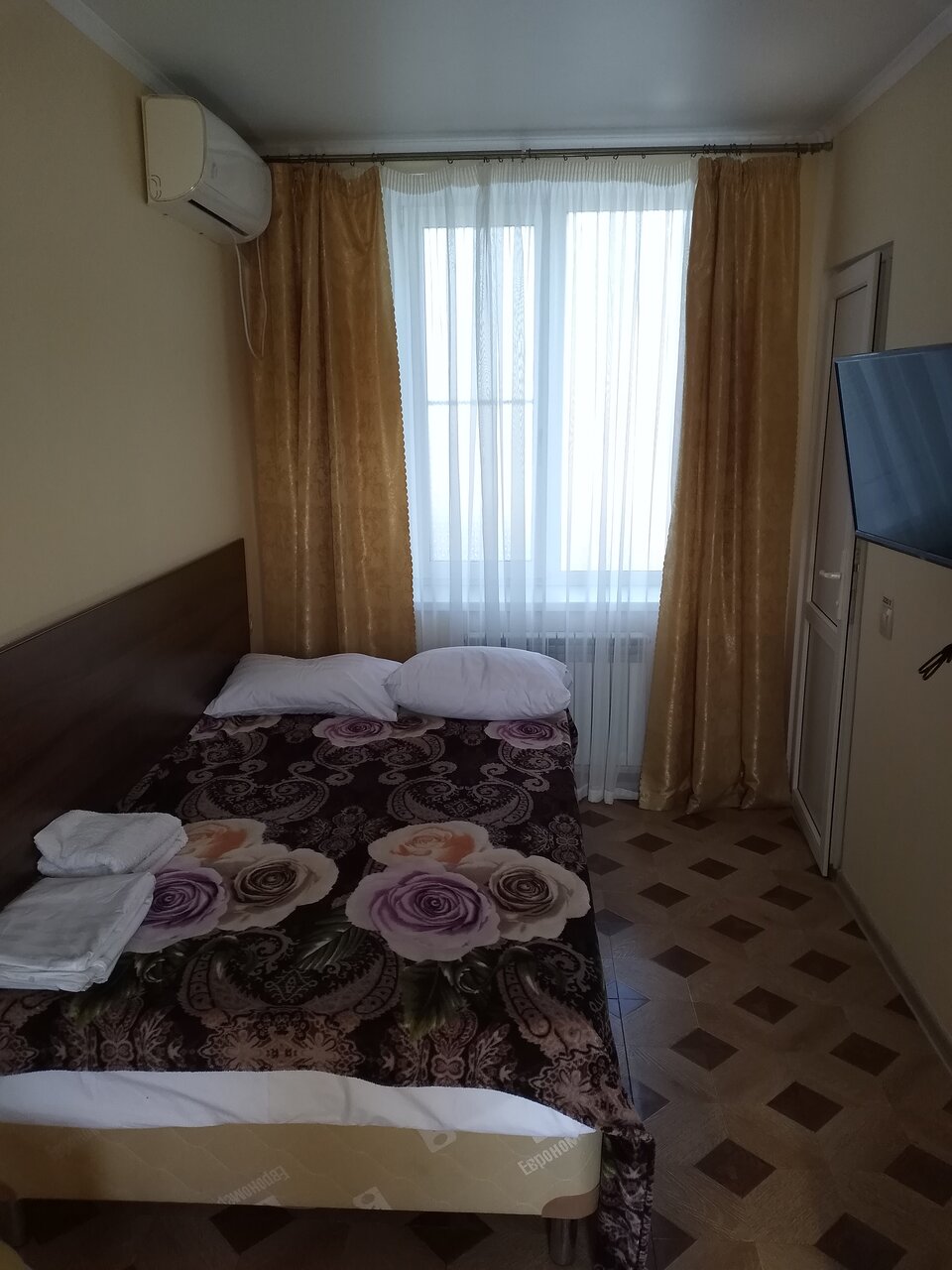 Ночевали по дороге на море. Вполне удобно. Чистое бельё. Пока ехали номер подготовили. Цена 2800 с двумя дополнительными кроватями-раскладушками для детей. Стоянка внутри двора. В холле гостиницы выставка всяких бытовых приборов и вещей советского времени. Из минусов расположение в стороне от трассы. А главное, вода с ужасным болтно-канализационным запахом была в душе.