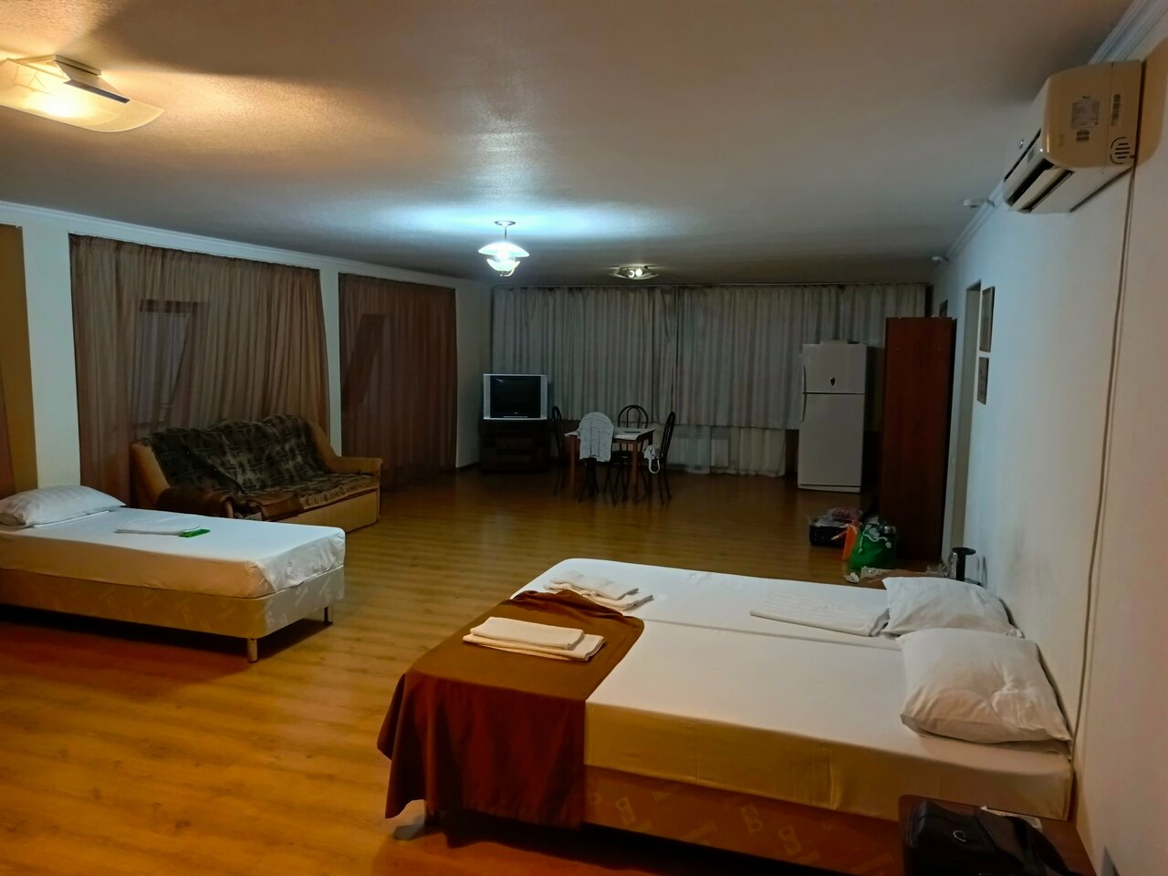 Останавливались на ночь , все хорошо. Чисто , комната просто огромная .