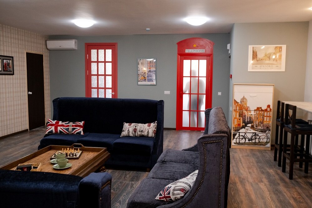 еожиданный атмосферный отель в южной станице. Останавливались по пути на юга. Качественный ремонт, удобные кровати, тишина. Неплохое кафе при отеля. Улыбнул конечно пудинг с куском сосиски внутри. Своеобразное кубанское трактование английской кухни. Рядом есть хороший качественный местный парк с детскими площадками и неплохим кафе на вечер. Не понравилось Размер комнаты скромный. Номер Лондон — окна выходят во двор в стену под какой-то козырек- если открыть окна, с кухни идет запах. Девушка на ресепшн приветлива, но ничего толком не рассказала ни про парковку ни про завтрак, ни про wifi — пришлось самому выпытывать. Также классно было бы поработать над звуковым оформлением гостиной и кафе — а то портит впечатление в таком интерьере по телевизору новости с киселевым, а в кафе какая-то попса. Вот что-нибудь атмосферненькое бы.