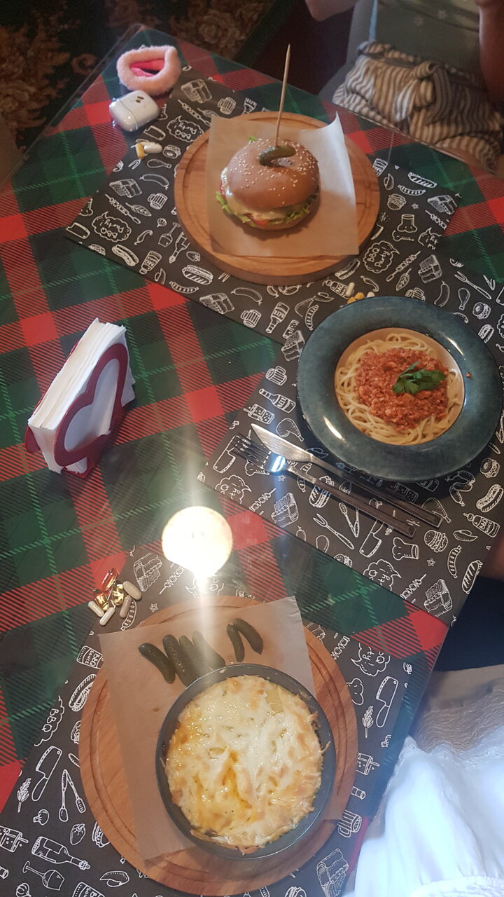- Вкусная еда (завтраки, бургеры, блюда в ресторане)