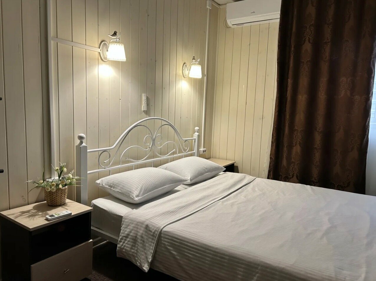 Останавливались на ночлег по дороге из Рязани в Геленджик, снимали номер 14 с большой кроватью. Внешне гостиница смотрится очень скромно, вся красота во дворе. Приятно были удивлены качеством постельного белья, полотенец и матраса на кровати — они как в 5 звездочном отеле! Кондиционер работал отлично, номер не на солнечной стороне — прохладно и комфортно в жару под 40. Отдельное спасибо горничной Евгении за отзывчивость и хозяйке отеля за дружелюбие и гостеприимство. Буду рекомендовать друзьям!
