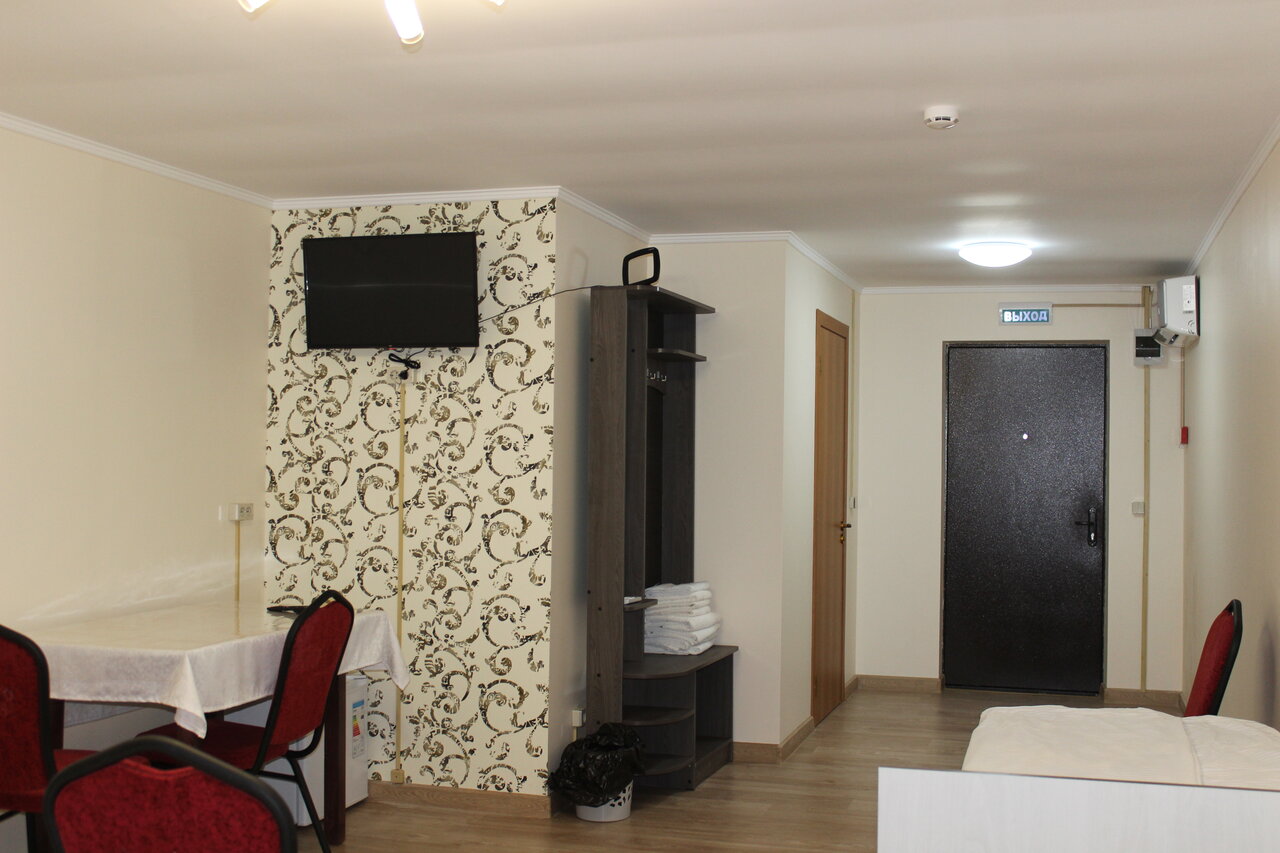Чисто, уютно и приемлемо по цене. Были в июне 2021 года. 2500 руб. с семьи из 4 человек. Санузел общий на несколько номеров, но очередь не собирается. Постель чистая, полотенца в номере, кондиционер есть. Куллер микроволновка на общей кухне. Парковка во дворе под камерами. Сотрудники вежливые и приветливые. В этом же здании есть столовая, но мы в неё не попали, поэтому сказать ничего про неё не могу. Для ночлега очень хорошее место и находится на незагруженной трассе. p/s Взял себе визитку и делюсь ею с Вами.