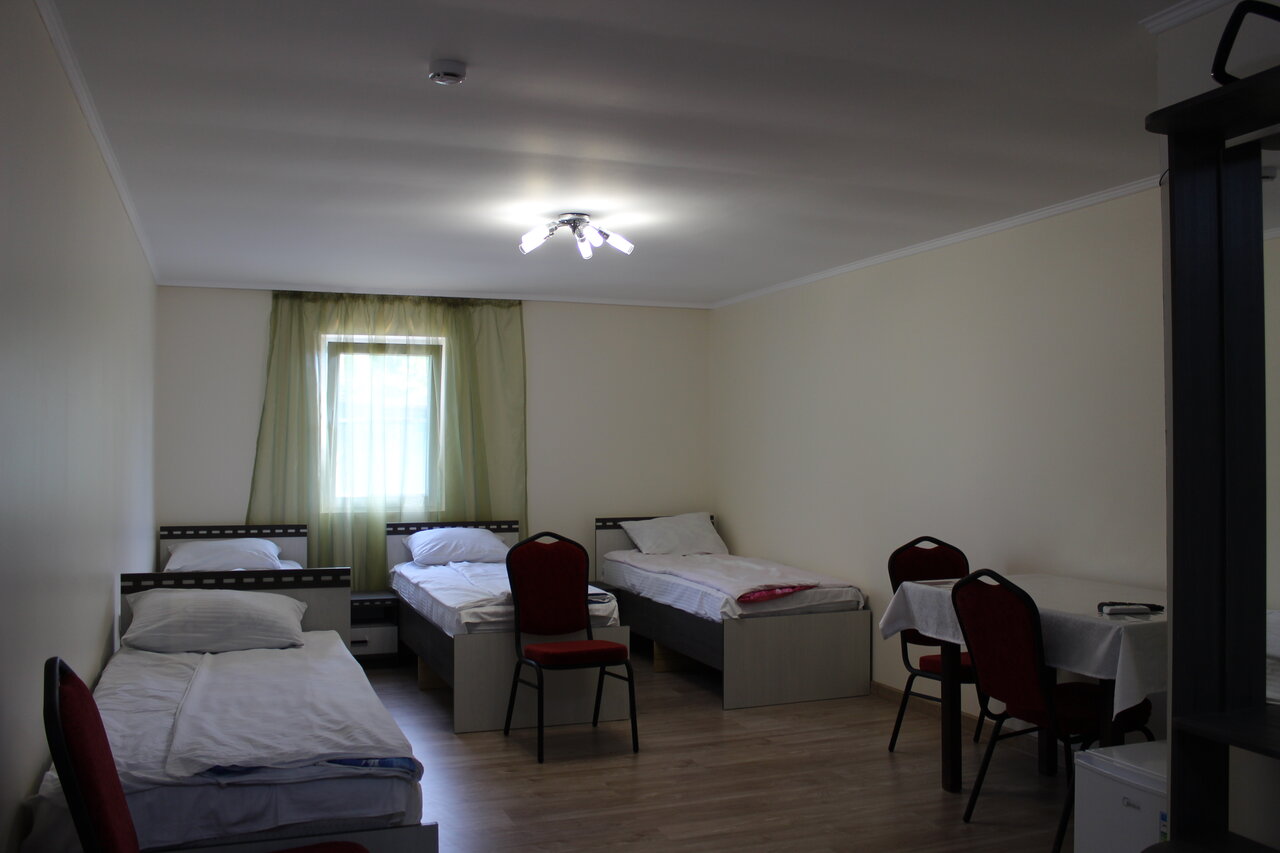 Очень классная гостиница , были в конце июля , ехали на юг. Удобно находилась по пути . Мы были заселены в номер с 4мя кроватями в отдельно стоящее 1этажное здание. Удобно : открыл дверь и уже на улице у машины , удобно ходить за вещами в машину и если малыши у вас (не надо подниматься ) Минимум контакта с другими людьми. В номере все есть , чистое белье , кондиционер, холодильник, посуда , телик . Номер большой у нас был по площади. Дети побегали ) Гостиница находится не на дороге , а нужно заехать во двор. Слышимость с улицы нулевая Из минусов- в туалете пахло канализацией , что-то с септиком . Но это термимо) Отдых удался . Рекомендую
