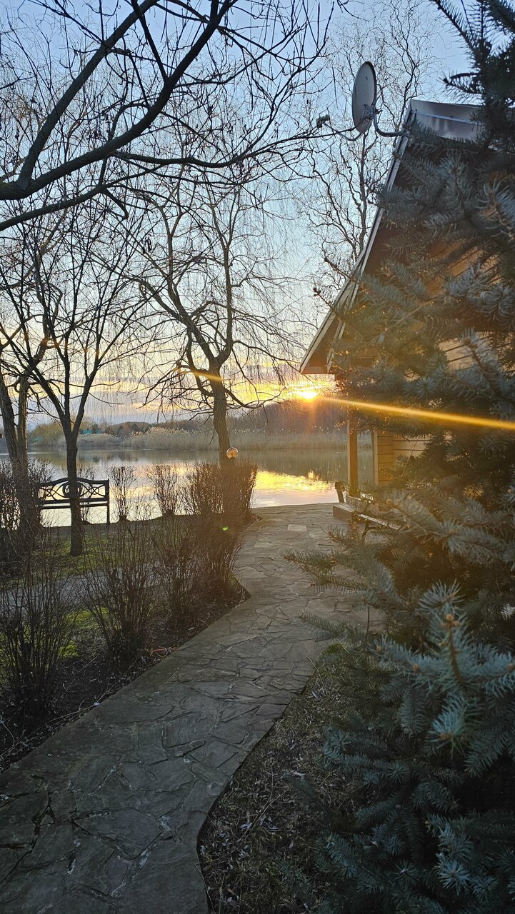 - Красивая местность и природа (озеро, зелень).
