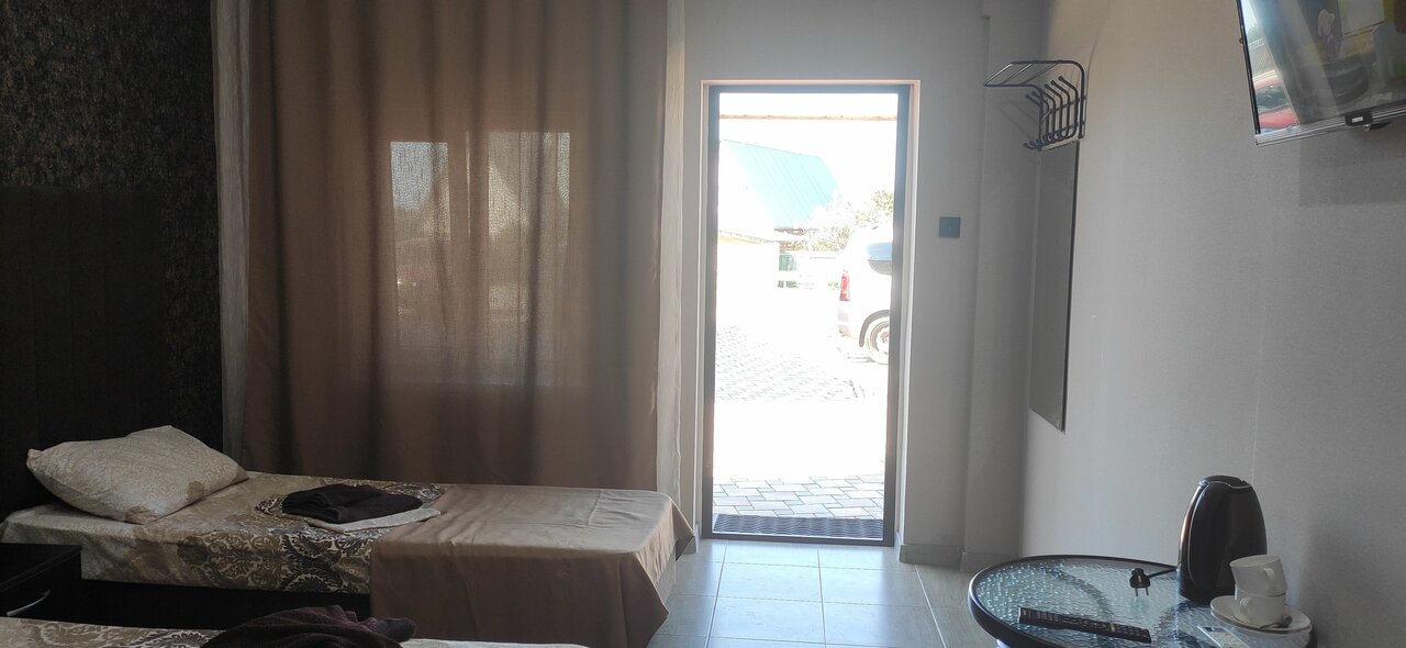 Номера находятся на 2ом этаже, над магазином. Останавливались на одну ночь по пути в Крым. Номер маленький, но чистый, опрятный. Есть туалет, душ, кондиционер, телевизор, мини холодильник. Прекрасно. Стоянка во внутреннем дворе. Советую.