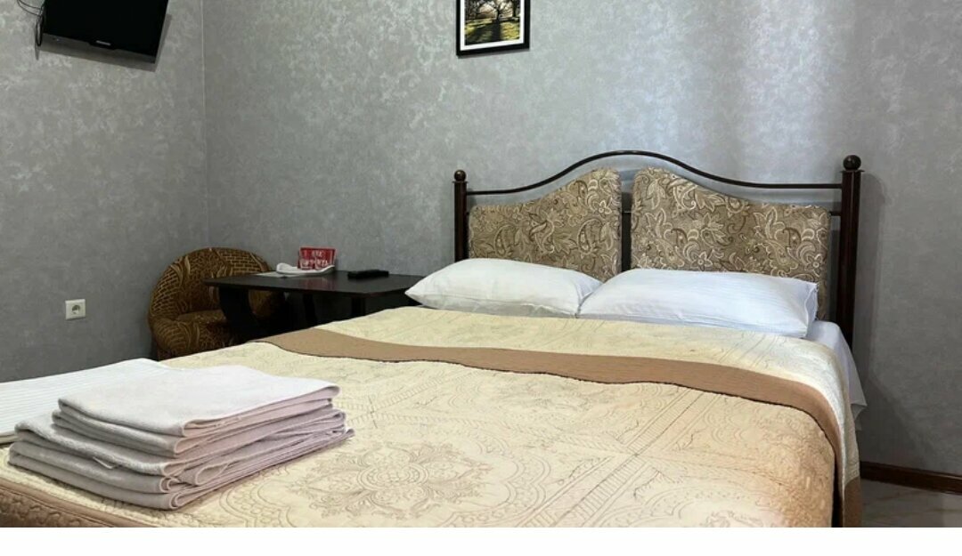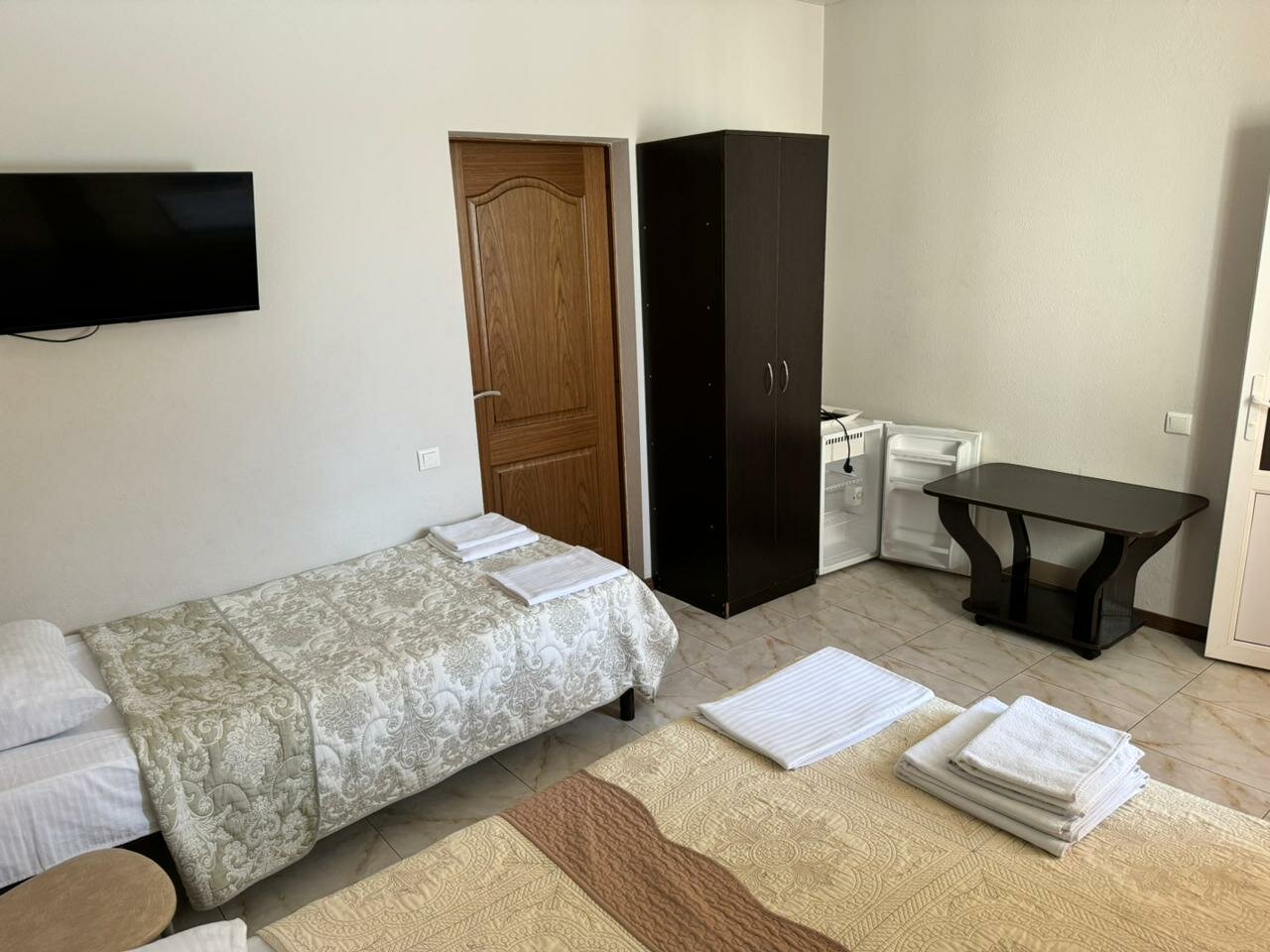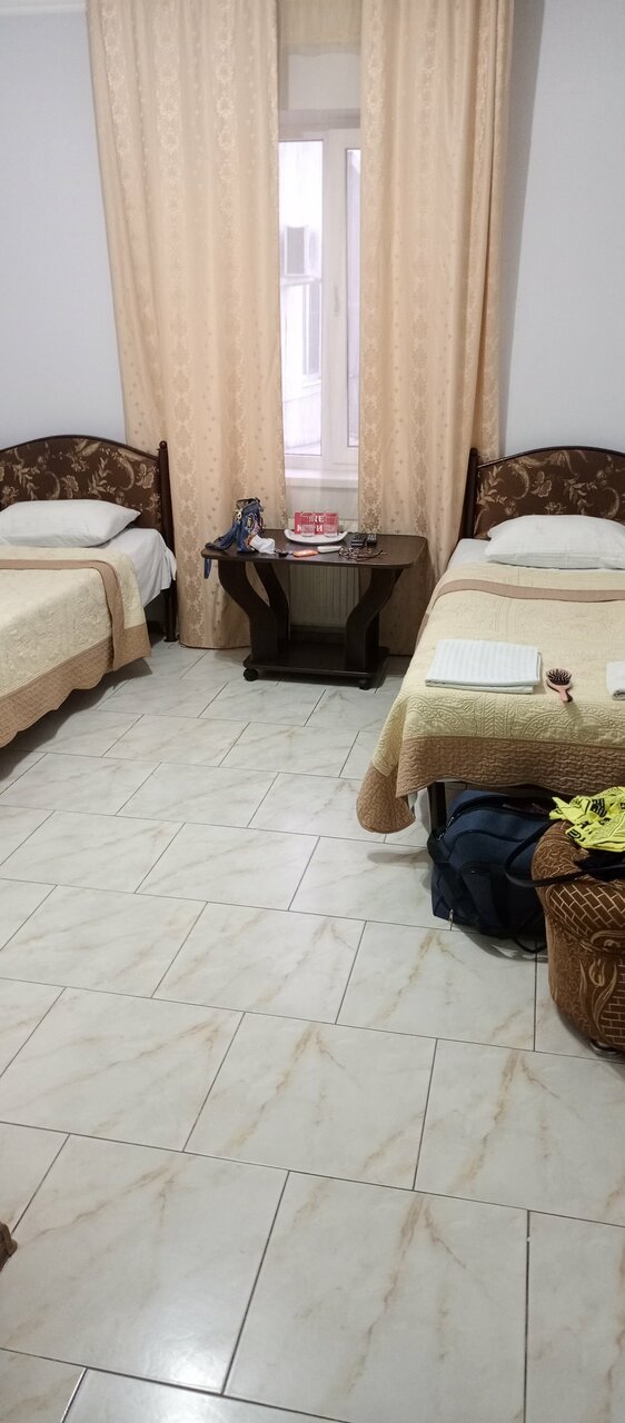 Номера достаточно большие, постельное белье чистое, в трёхместном номере 2!!! комплекта полотенец . Девушка на рецепшене вежливая .Сантехнику стОит заменить. В ванной грибок.Ночью шел дождь и в номере капало с потолка.В кафе рядом даже заходить не стоит. Заказала плов- принесли рисовую кашу с морковью и сверху!!! пару кусочков отварного мяса.