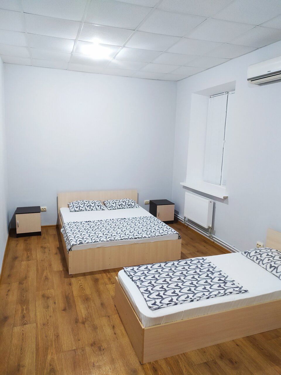 4 одно спальных кровати, полотенца, белье, с/у рядом с номером, кондиционер в номере. В распоряжении большая кухонная зона с телевизором, холодильником и всем необходимым.
