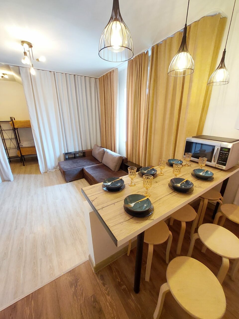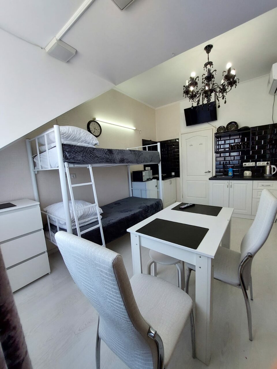 Расчитана на заселение от 1 до 7 человек · В студии есть легкое разделение на 2 зоны отдыхаЦена:От 1 до 4 человек 4.000 руб в суткиЗаселении более трех человек:-доплата за каждого человека по 750 руб.В студии есть все необходимое.