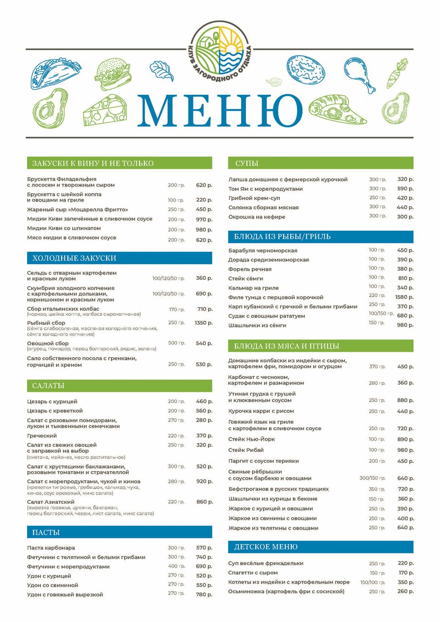 Скачать прайс-лист Клуб загородного отдыха на ноябрь 2025 года
