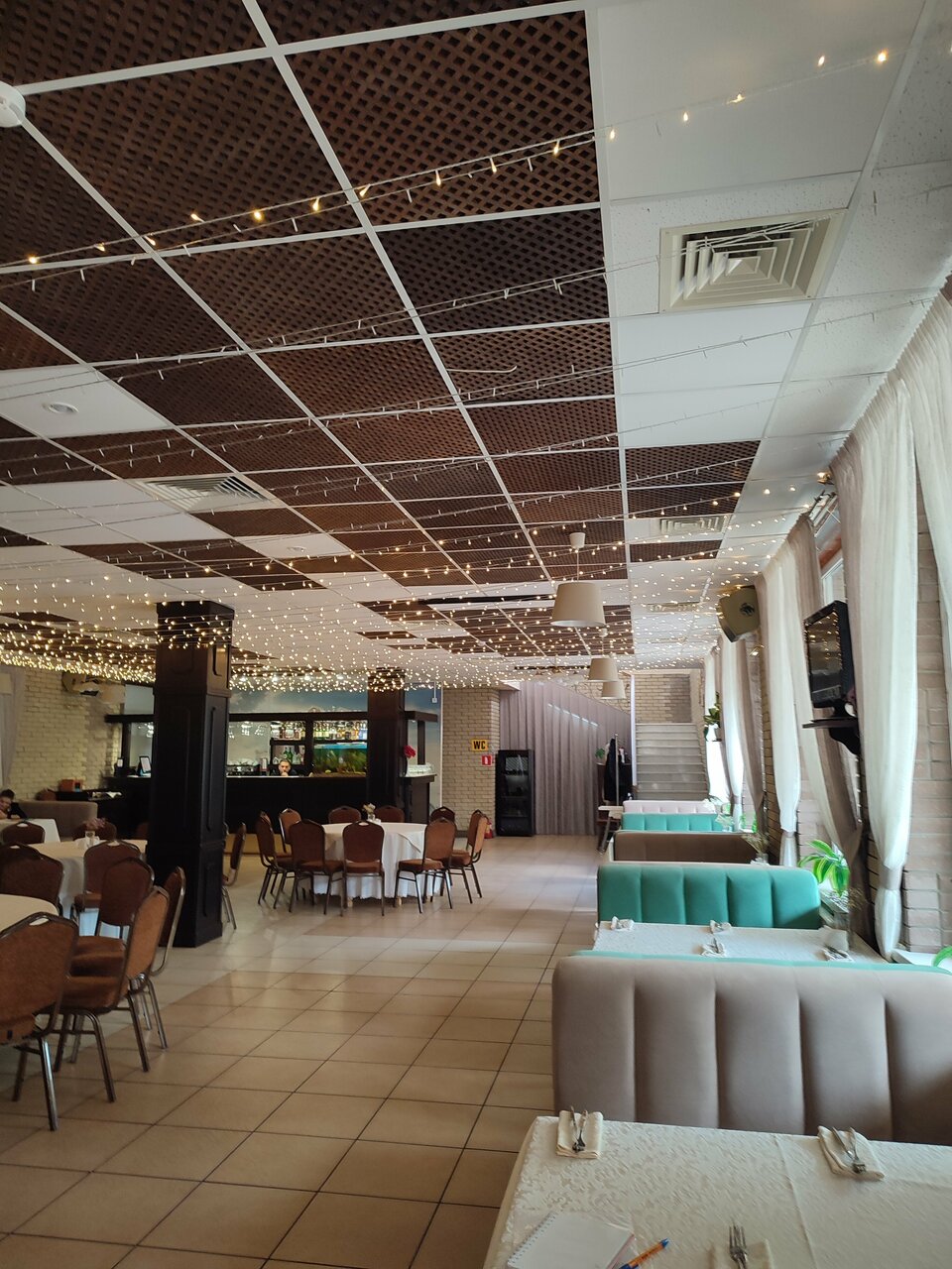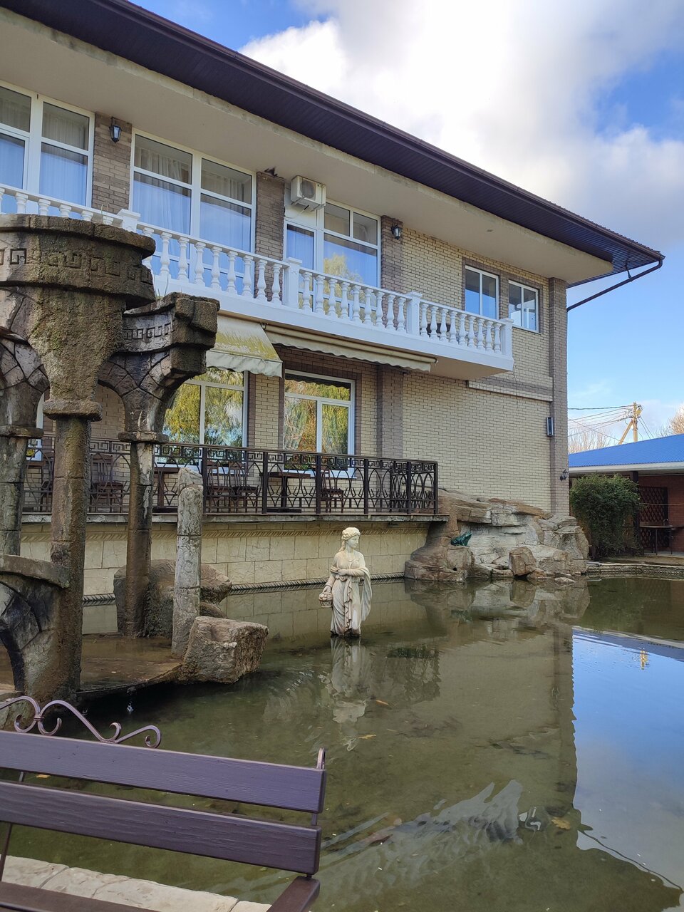 Большая территория есть несколько прудов с беседками. Спортивные площадки где можно поиграть в футбол и тд. Из минусов необходимо навести порядок на территории. Ресторан отличный, хорошее быстрое обслуживание. Хорошая музыка. Есть место где потанцевать.