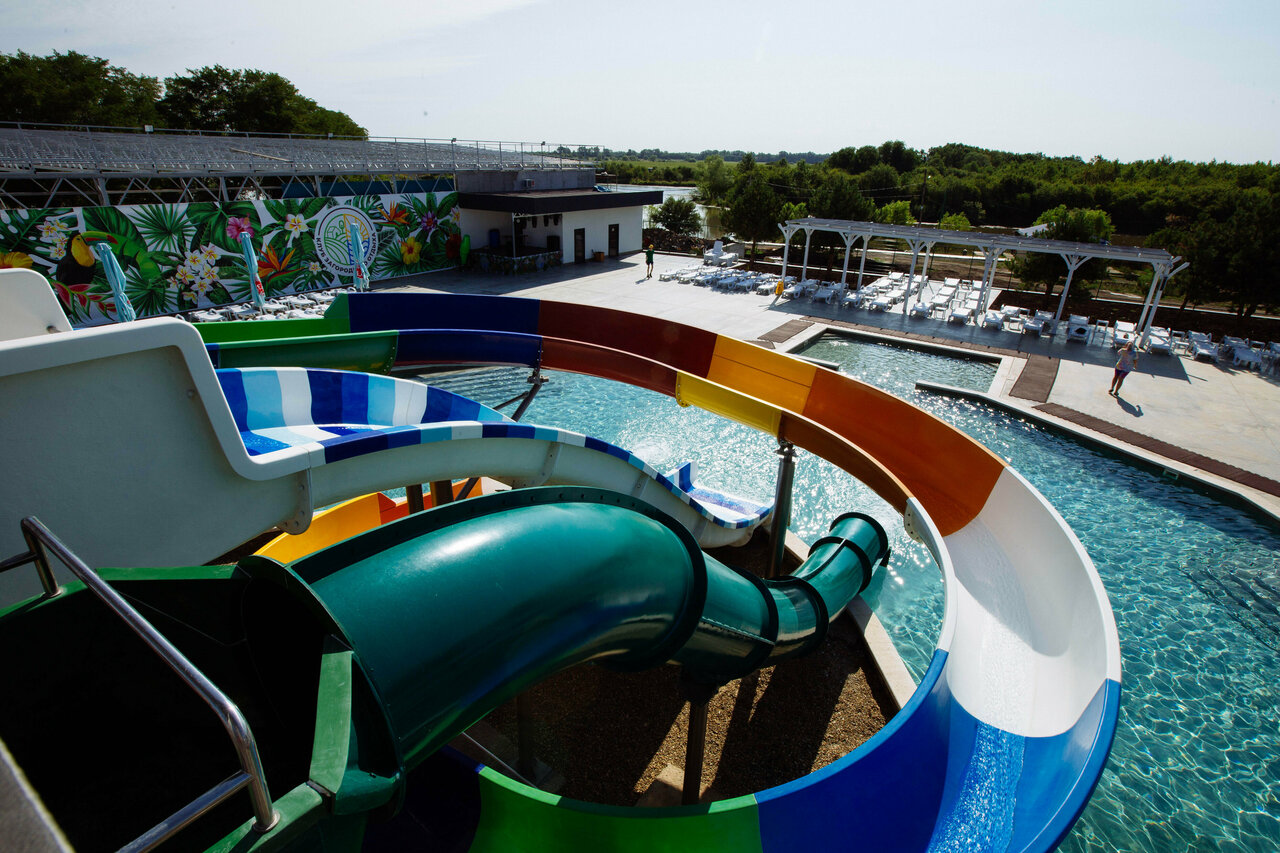Аквапарк 5 горок, глубина в зоне приземления 120 см, детский бассейн 40 см.Будни 1000р выходные 1500р дети до 4-х лет бесплатноКомфортабельные раздевалки с душевыми, полотенца в неограниченном кол-ве, лежаки с теневыми зонами и зонтами, кафе с р...