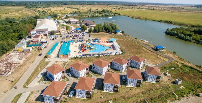 - Подходит для отдыха с детьми (бассейн, горки, кафе).