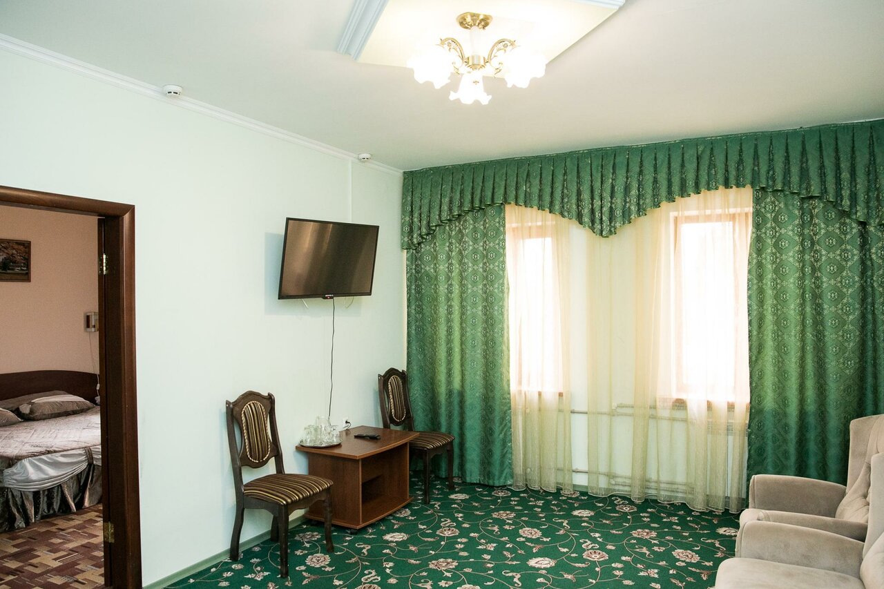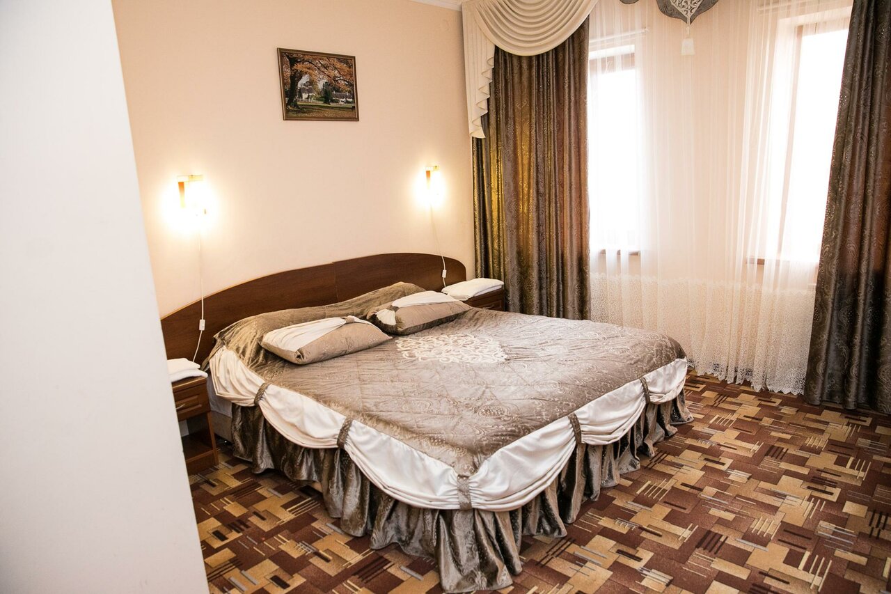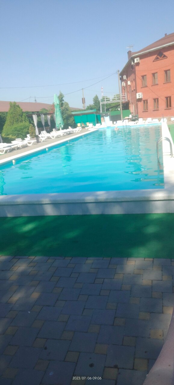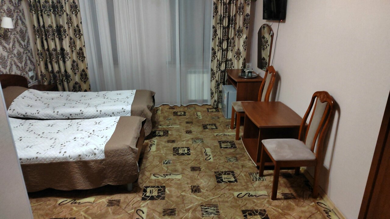 Останавливались на одну ночь по пути на море в августе. Отличная гостиница, сняли номер с тремя кроватями. Номер большой, всё чисто, современный ремонт и мебель, свежее постельное и полотенца, мыльные принадлежности в ванной, кондиционер, холодильник, телевизор. Из того чем не успели воспользоваться: шикарный бассейн на территории, кафе с 10 до 22, сауна, прачечная.