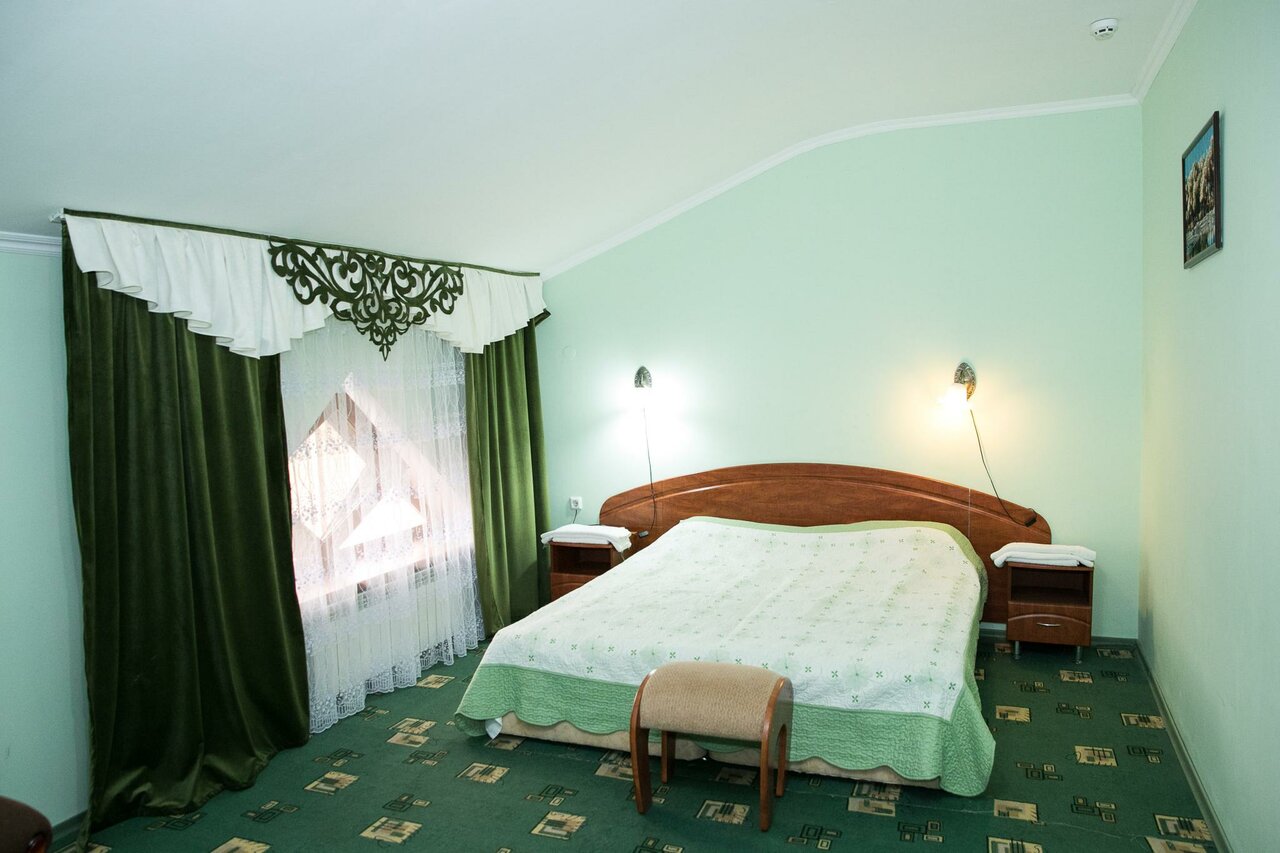 Остановились семьей на ночь перед Рождеством .Номер 3 х местный. Темпло, перед сном проветрили.Приятно, что тихо, можно выспаться.Постельное чистое. Сан узел вымыт хорошо. Обои в пятнах от вина или шампанского , заметили их не сразу. Из окна номера видна была гора Собер Баш, вдалеке, но легко узнать ее по рельефу вершины.В целом, рекомендую