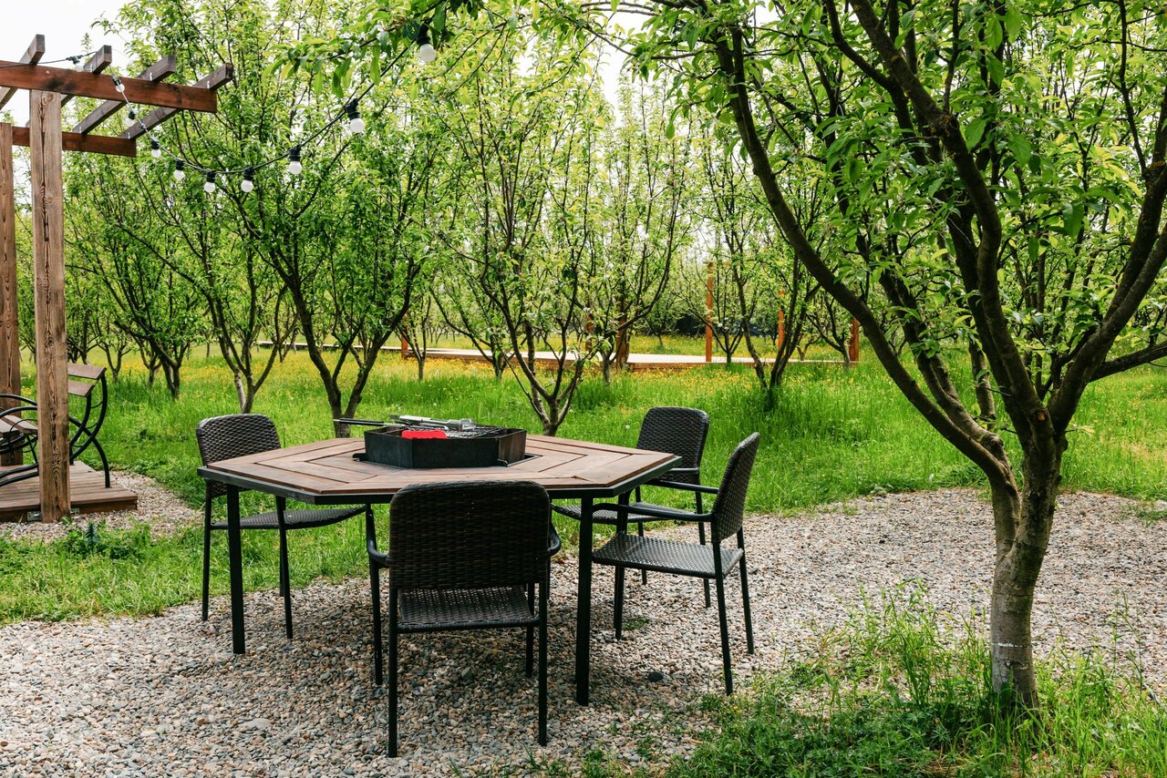 Мы в восторге! Домики в яблоневом саду! Тишина! Красота! Персонал приветливый, внимательный, вежливый. Везде на территории чисто, аккуратно, красиво, современно. В ресторане быстрое обслуживание, очень вкусно, красиво оформлено каждое блюдо, комплименты от шеф-повара! Вечерний кинотеатр — отличное место для отдыха, удобно и интересно смотреть фильм. Зона у костра вызвала волшебные, фантастические ощущения! Фотографировтьася можно на каждом шагу, везде получаются красивые фото! Всё сделано с любовью! Спасибо вам за это! Спасибо за отдых! Спасибо за сервис! Спасибо за чистоту! Спасибо за уют! Спасибо за вкусные блюда в ресторане! Вы лучшие! Желаем вам процветания!