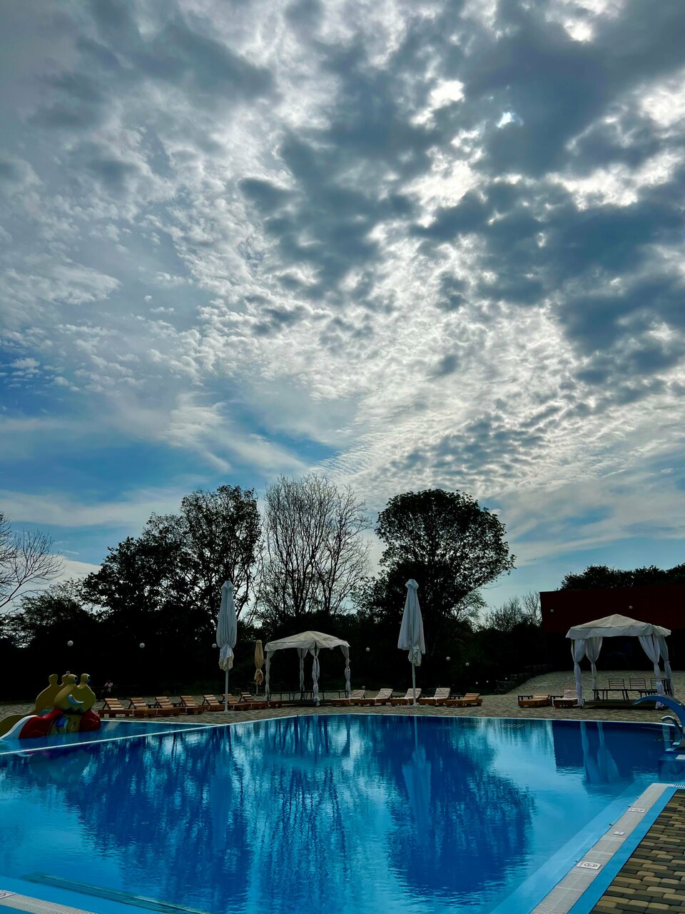 Тихо, спокойно, уютно, далеко от городской суеты. Можно отдохнуть наедине с природой. Территория ухоженная, бассейн чистый