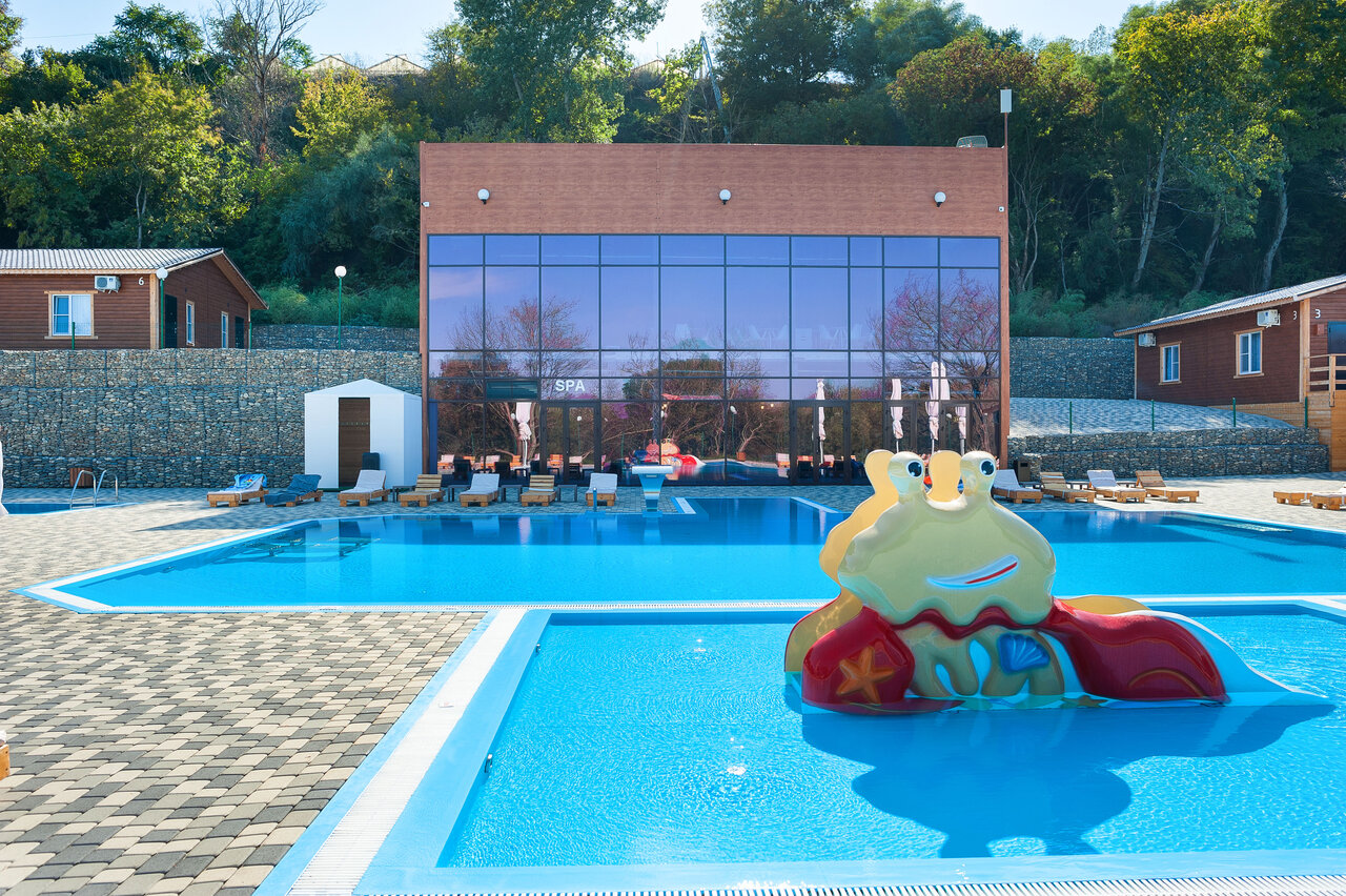 Место просто супер! Все идеально чисто. сауна, хамам просторные! Территория красивая, хорошая детская площадка , бассейн очень приятный))). Ресторан атмосферный, вкусные блюда, приветливый персонал!!! Если отдыхать от всех)) то именно здесь)