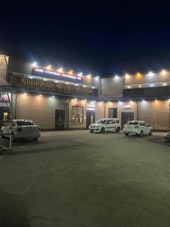 Хорошее место, если застала ночь в пути. Расположен отель прямо на трассе. Двухэтажное здание, на первом расположена столовая, которая работает круглосуточно, что весьма удобно. На втором сам отель. Номер небольшой, но для переночевать вполне хорошо. Есть балкон в номере. Интерьер приятный. Помещение столовой очень красивое, все сделано качественно, грамотно и со вкусом. Еда вкусная, по доступной цене. Есть своя стоянка для машины, небольшая площадка для детей. Однозначно рекомендую.