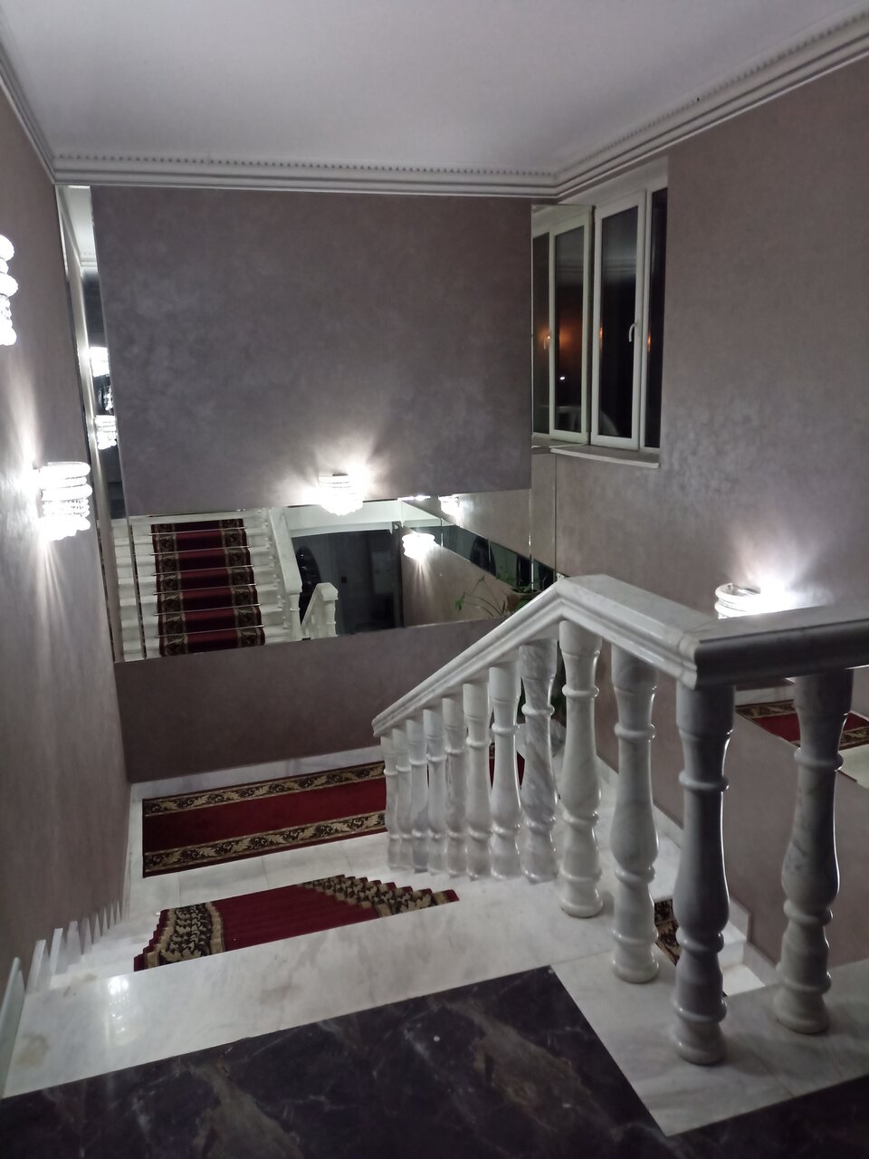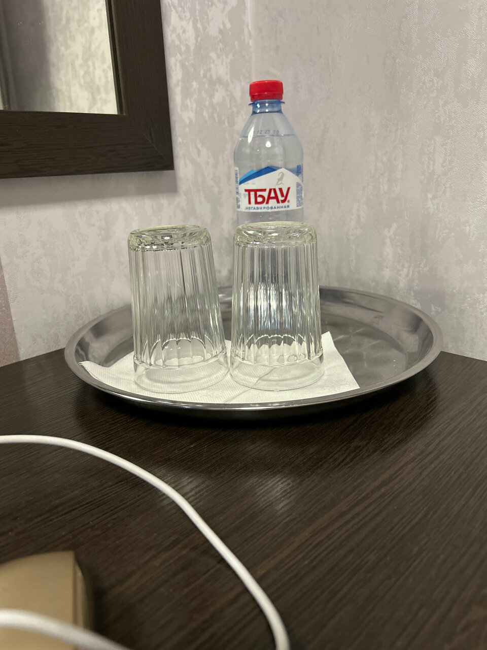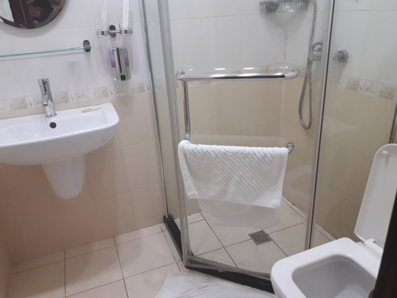 В целом всё замечательно, большая роскошная на вид гостиница, небольшая цена за номер ‘ стандарт’. Из минусов: сама непосредственно гостиница находится на третьем этаже, номер хороший, но маленький и в номере нет чайника.