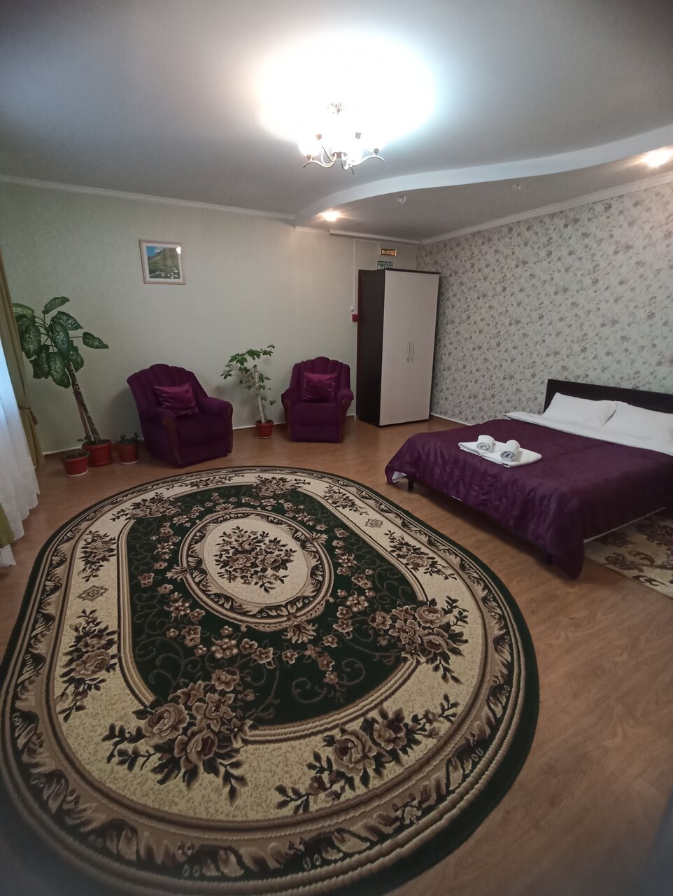 Чистый номер. Постельное белье нормальное, не синтетика. Приняли ночью на ресепшен с дальней дороги. Парковка своя за воротами. На этаже есть общая кухня.