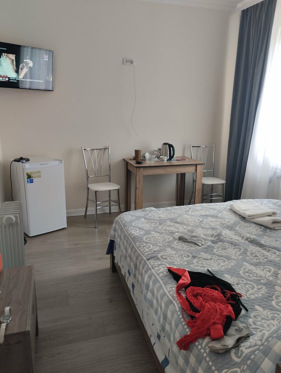 Нужно было переночевать. Заехали в 9 номер. Телевизор не работает. Просили ребят которые там проживают настроить хоть что то. Получилось настроить только три канала и те новостные. В номере не очень тепло и после душа, даже прохладно. Номер не из бюджетных и за цену в 2700 за сутки, можно было постараться чтоб всё работало и у гоить был доволен.