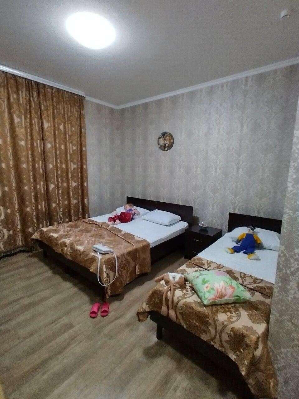 Для гостинице у дороги все супер. Удобные кровати, чистое белье, полотенца( все белое!). Очень комфортный санузел в номере( есть даже полотенце длч ног). Гостеприимный администратор. 4 тысячи за 4-местный номер вроде бы дороговато, но это того стоило!