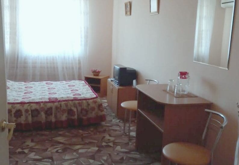 Услуги: — Номера от 1500 ₽/ночь — Кондиционер, холодильник, TV, Wi-Fi — Общие кухня и туалет, есть номера с кухонным уголком — Бесплатная парковка, проживание с животными — Ускоренная регистрация, уборка, вызов персонала — Чай/кофе в номерах, фен, утюг