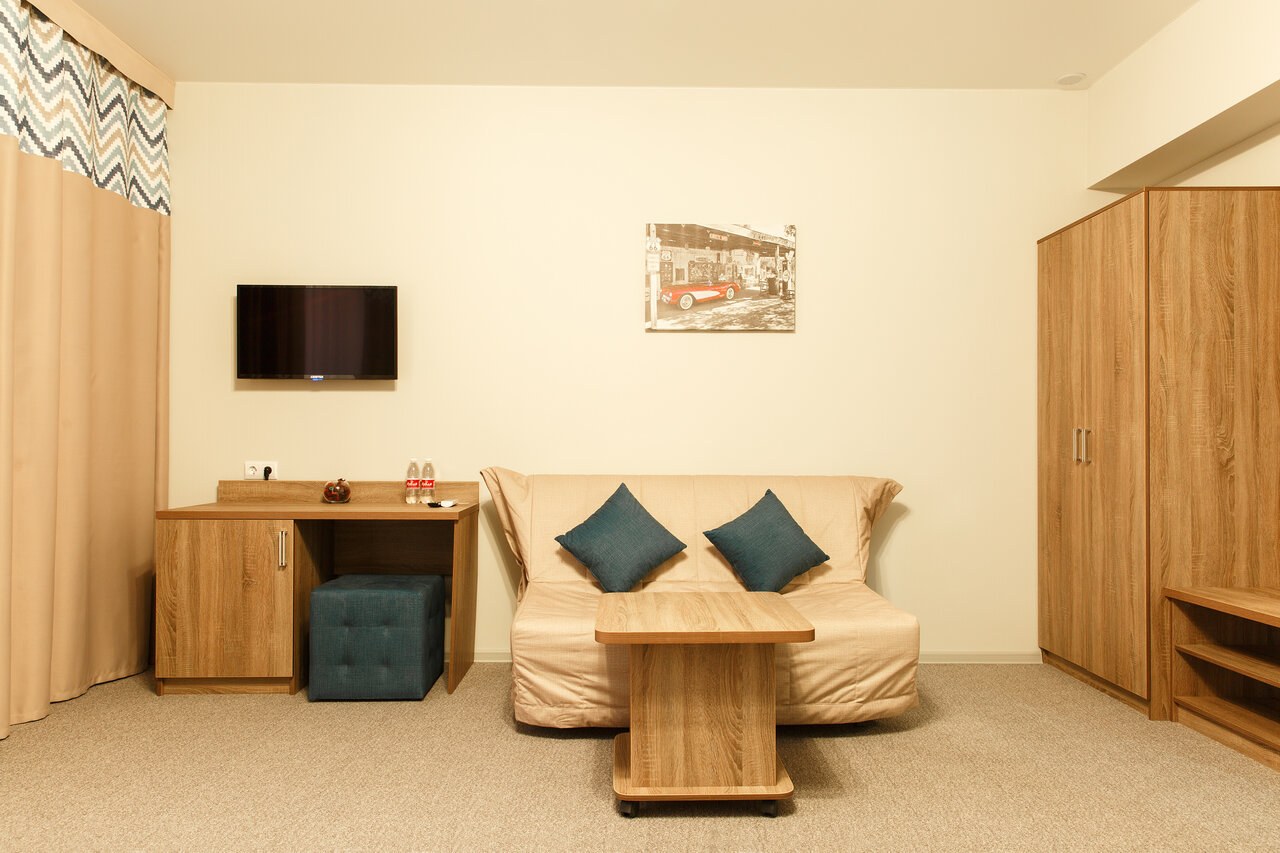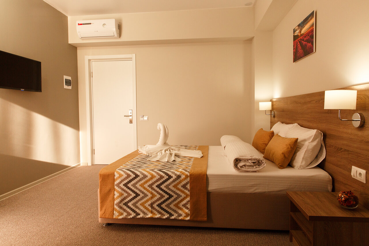 - Комфортные номера с необходимой техникой (холодильник, телевизор, кондиционер, чайник).