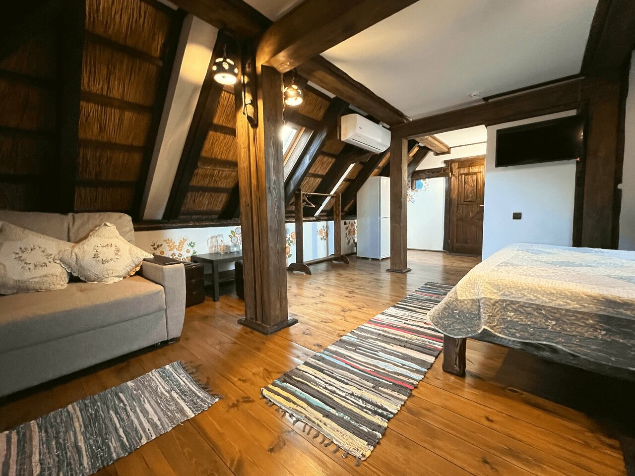 Мы местные и искали в праздник место для отдыха. Были не раз в Тамани и видели это здание и как то не обращали внимание. Гостиница, если это можно так назвать,офигенная! Зацепила именно видом, кубанским дизайном хат. Снаружи и внутри впечатляет. Комнаты просторные , мебель и пол дерево. Все сделано со вкусом тех времен. Все необходимое для проживания есть ( мебель, техника, вода горячая и холодная, отопление). В комнатах очень тепло. Мы даже окно открывали, жарко детям. При гостинице есть свой ресторан, где можно покушать. Завтрак в цену не включен нас записали на завтрак отдельно. Виды на море и во двор. Рядом парк, магазины. Спасибо огромное за гостеприимство!