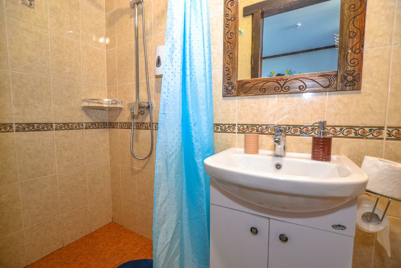 Интересное место, первая линия, оформление на 5+. Единственное, чего не хватило — это микроволновки чтоб разогреть еду, чайник дали. С водой небольшие проблемы — постоянно напор меняется то на сильно горячую то на холодную воду — ловить приходится. Есть свой генератор — это огромнейший +. При отключении электроэнергии у вас все будет работать(кондиционер, холодильник). Приятное и удобное место, думаю что еще раз приедем.