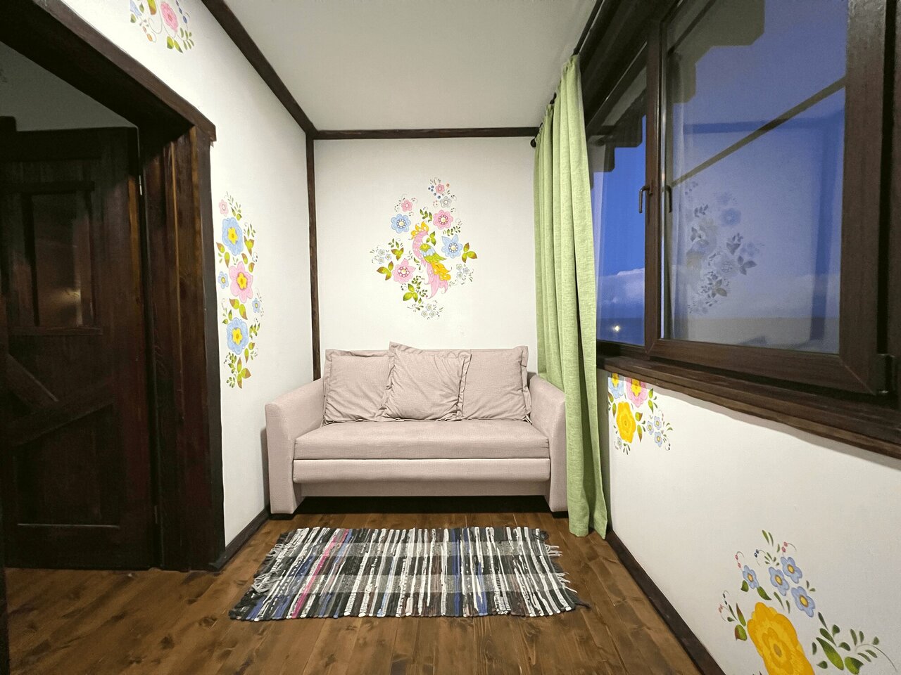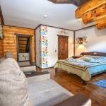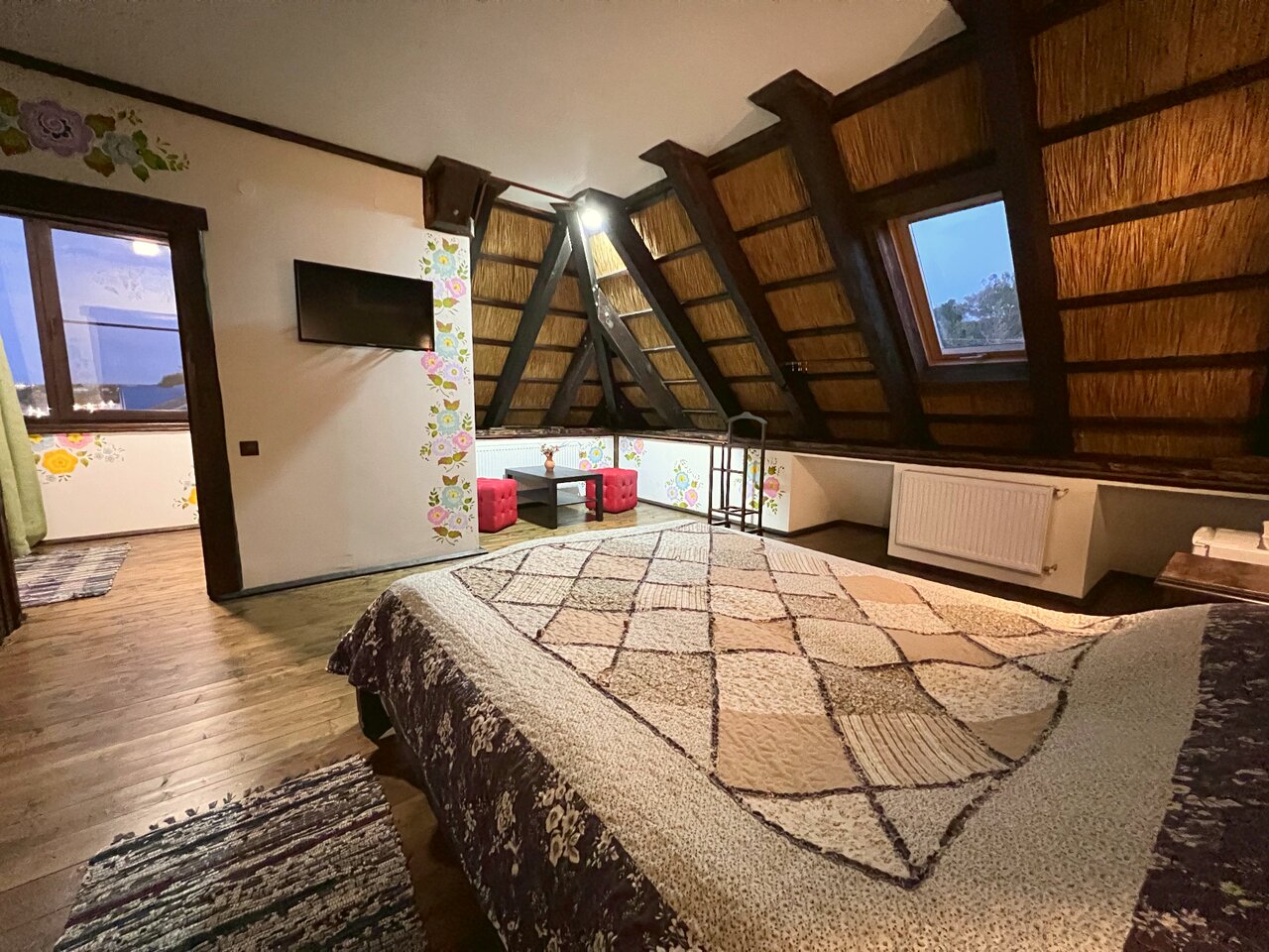Сама постройка отеля и расположение очень понравились! Великолепный сруб, ручная роспись стен, интересный интерьер, вид на море завораживающий. Однако цена за проживание явно завышена, в номерах ванные комнаты нуждаются в современном ремонте.
