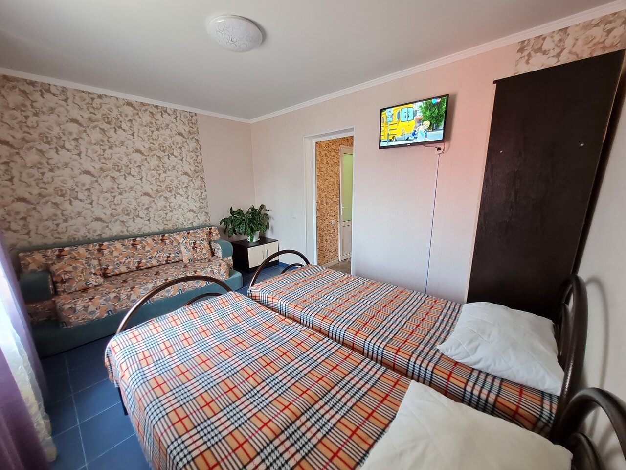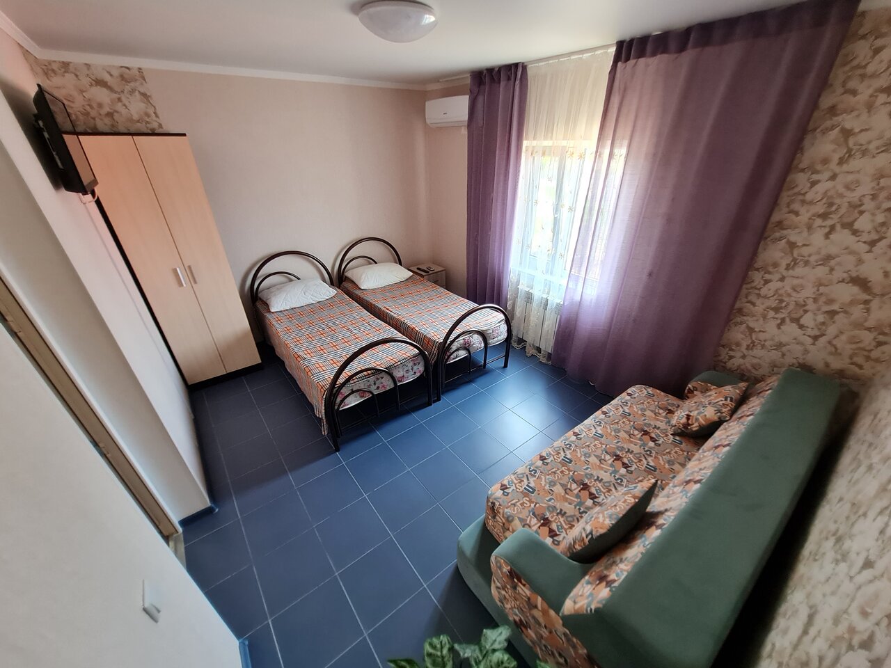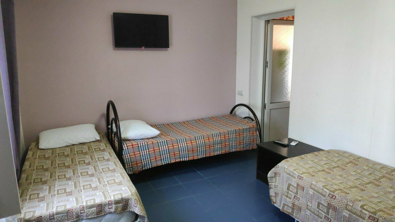 Просторный номер с кондиционером и LCD-телевизором с Алисой. Четыре односпальные или две двухспальные кровати по вашему запросу, свежее бельё и полотенца.