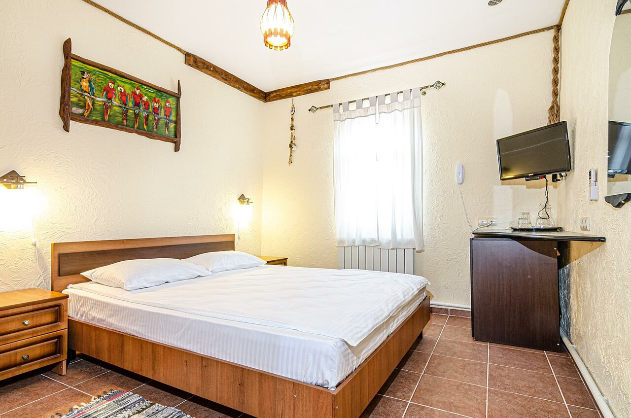 Номер категории МОРСКОЙ ДАБЛ площадью 22 кв.м оснащён всем необходимым для Вашего отдыха и комфортного пребывания. Деревянные панели придают номеру атмосферу античного духа Боспорского царства. В номере одна двуспальная кровать. Завтрак включён.