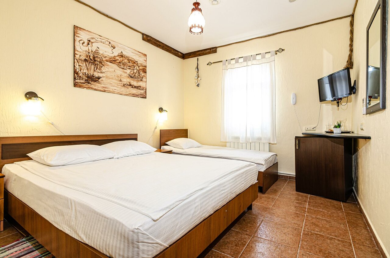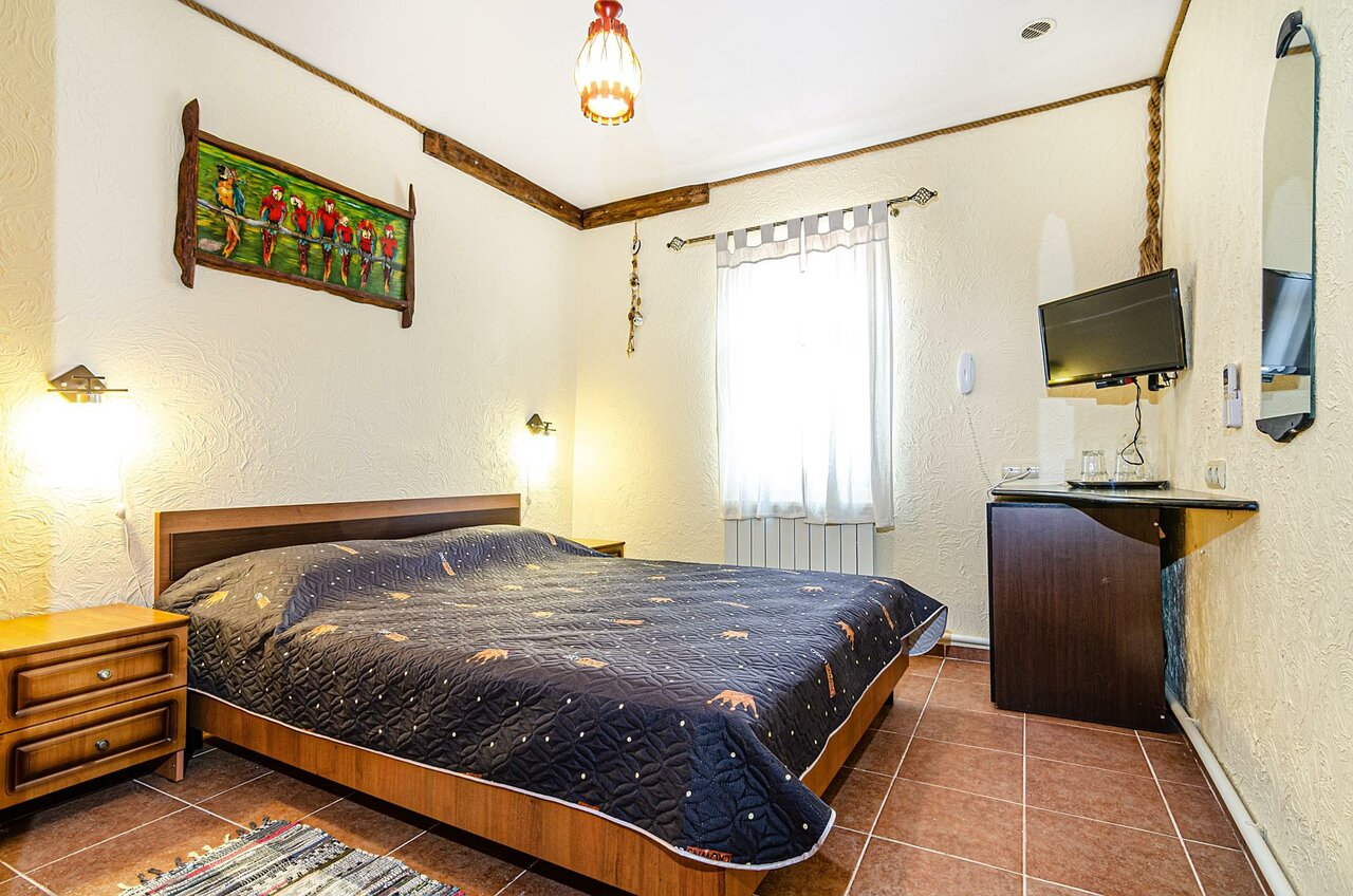 Номер категории МОРСКОЙ площадью 21 кв.м оснащён всем необходимым для Вашего отдыха и комфортного пребывания на Тамани. Деревянные панели придают номеру атмосферу античного духа Боспорского царства. Завтрак включён.