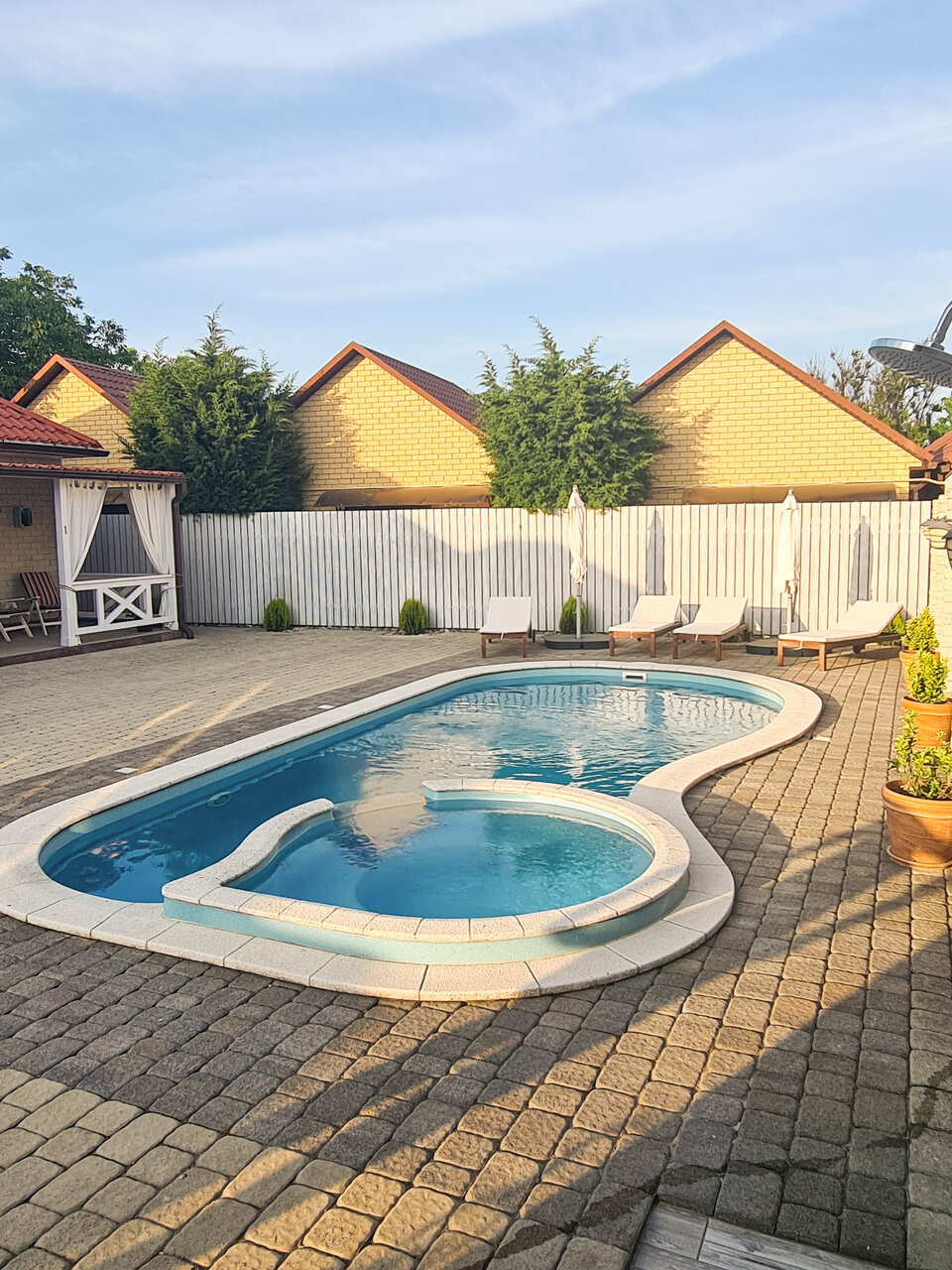 Всё просто супер. Чисто,аккуратно. Хозяева доброжелательные, удобное расположение, бассейн чистый, вода теплая. Проживали в 5. Удобное доп.место.