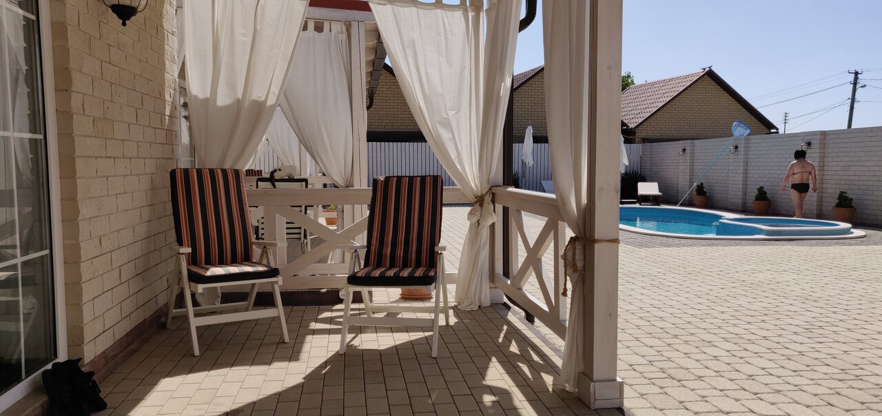 Рекомендую гостевые домики. Хозяева сделали всё, чтобы гостям было комфортно. В номерах всё сделано, как для себя. Даже чистящие средства только качественные: Амвэй, Эйрвик. Проводится уборка. Домики внутри все разные, есть с плитой и без плиты. Есть чистейшие бассейн и сауна. Очень хорошее отопление. Коттеджи наполнены аксессуарами. Есть белые домики, с белыми балдахинами у входа, креслами для загара и бассейном у выхода. Два разных входа, сразу за забором кафе с вкусной едой под стиль, с белыми диванами. Хочешь готовь сам, хочешь в кафе. От кафе шума нет, прекрасная шумоизоляция. Ощущение, что живёшь в Европе. Все отделано высококачественными материалами. Как человек, знакомый непонаслышке с дизайном, учтены все ньюансы декора и отделки, Мебели, стиральные машины А+ класса, с шумоподавлением. Во дворе большой мангал и два деревянных стола со стульями на две большие компании. Посажены цветы и ели. Искренне рекомендую, частичка Европы в Тамани.