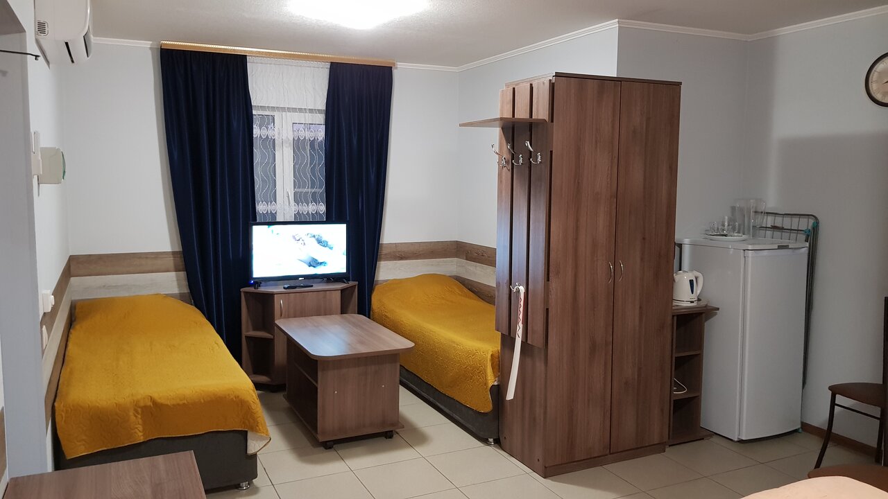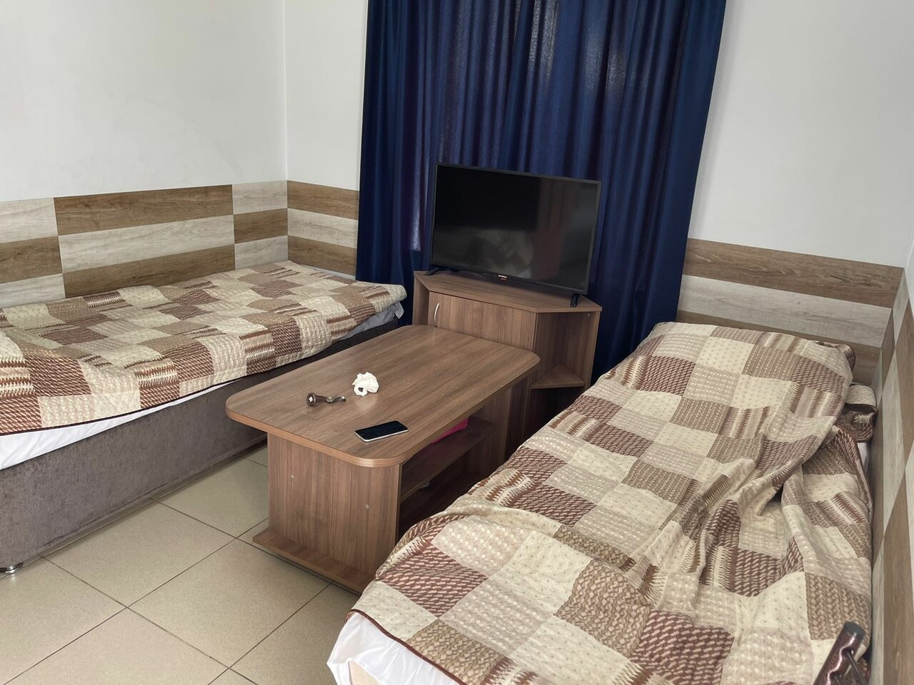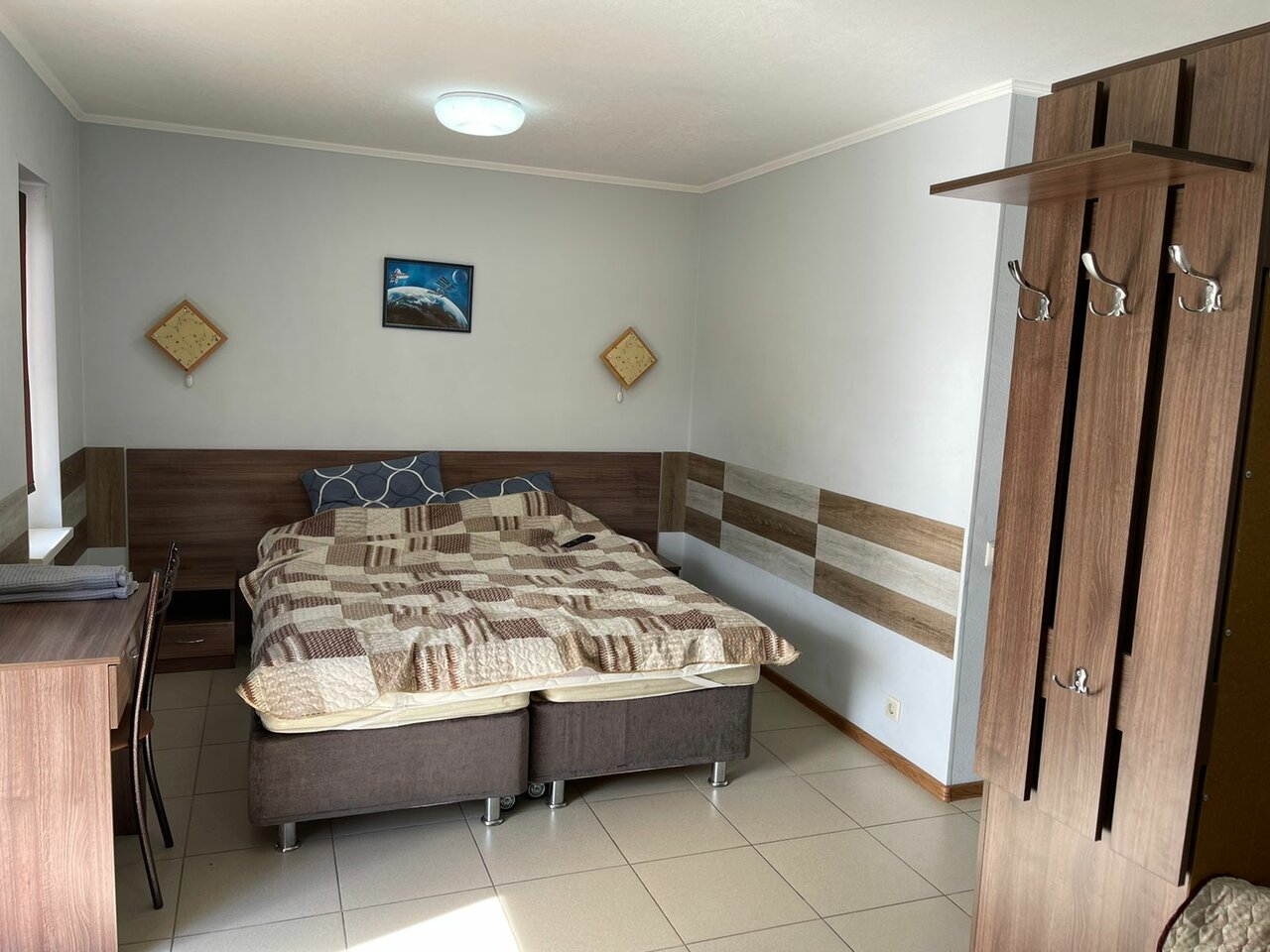 Без предварительной брони, набрав в Навигаторе отель, заехали и заселились (до этого были ещё в трех отелях города, нигде не понравилось). Правда, забрали последний номер. Очень уютно, чисто, красиво. Номера отличные, есть все, что нужно. Более того, номера 4-местные, чего тоже не ожидали за приемлемую цену. Приятно удивило, что не только уборка каждый день, но и смена постельного белья. Минус, один, но все ж есть. Не представляют мыльнорыльные принадлежности, берите это с собой. Есть столовая, которая по предварительному заказу на обед и ужин, приготовит все, что хочешь. Завтрак по факту, пришёл, заказал, сделали, поел. Очень рекомендую.