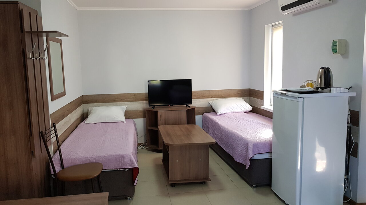 - Чистота и аккуратность.; Отдельный вход в каждый номер.; Кондиционеры в номерах.; Просторные и уютные номера.; Ежедневная уборка и смена постельного белья.