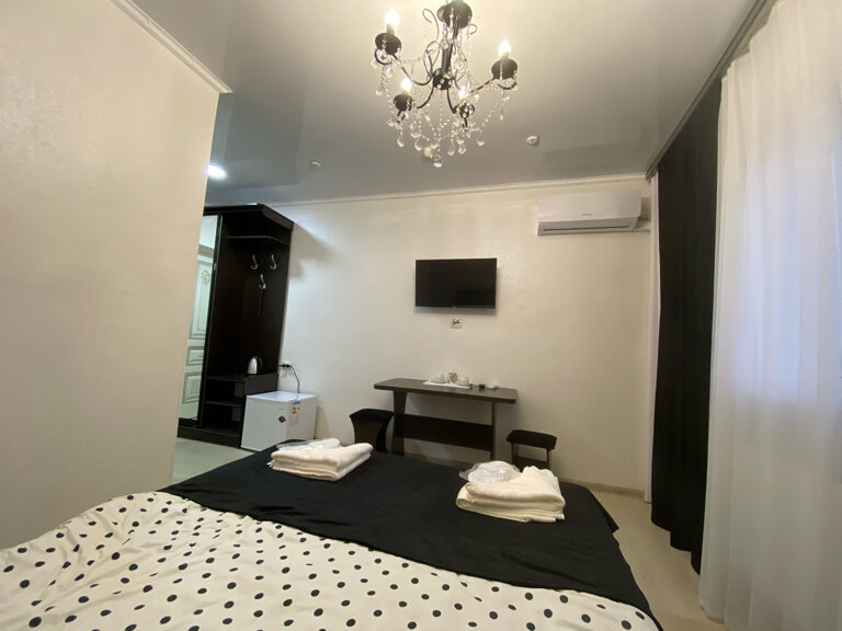 В целом хорошо. Комната не большая , но для тех кто едет транзитом вполне подойдёт. Красиво внутри, много заботы в виде шампуня, тапочек,кофе/чая. Благодарю хозяев ! Есть фен и микроволновка, утюг. Расположение удобное. Рядом есть два магазина и аптека. Немного недо/застиранные полотенца, поэтому не отлично. Но ещё раз повторюсь, что для путешественников отельчик подходящий!